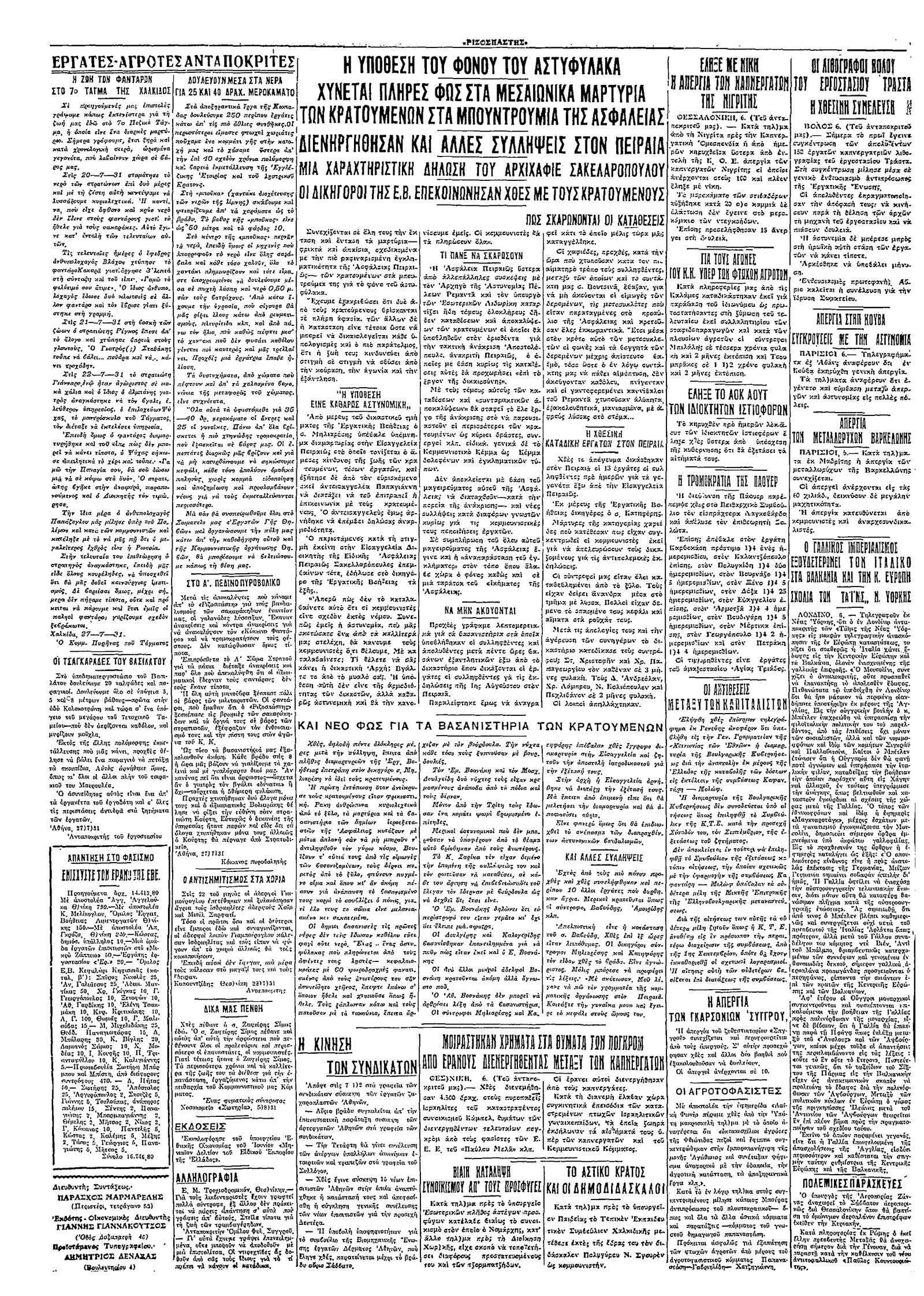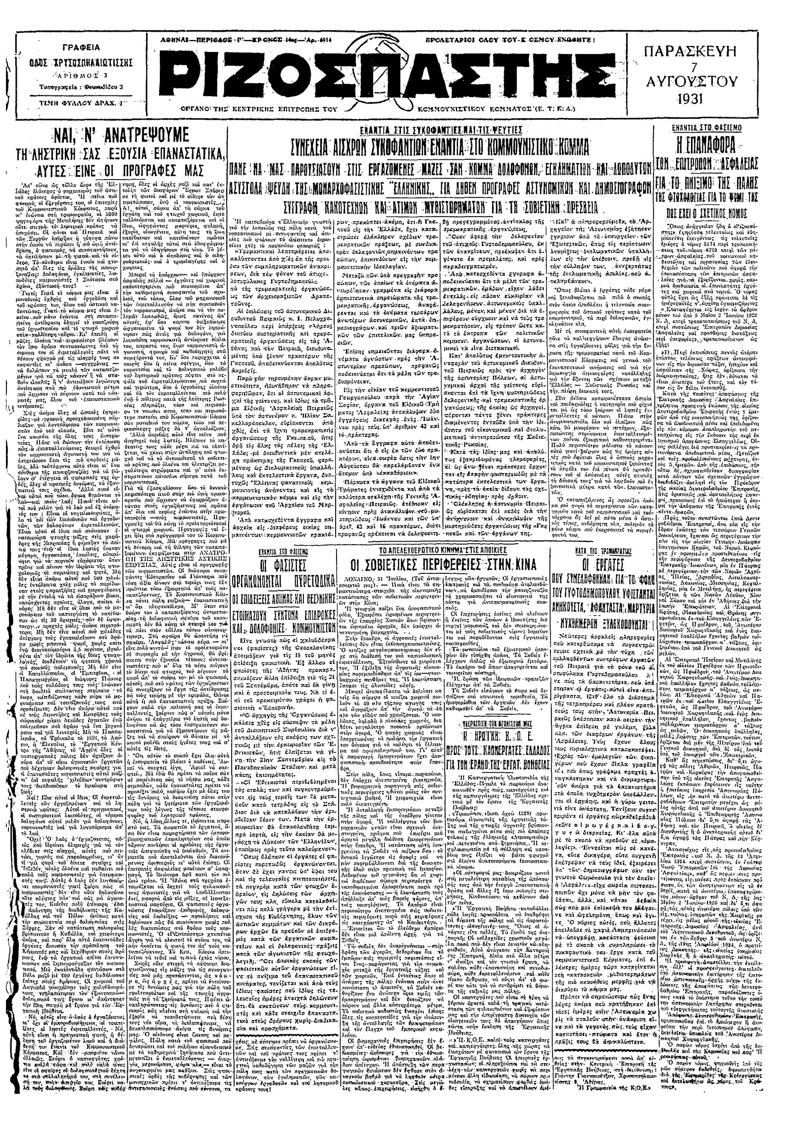 Ριζοσπάστης 07/08/1931