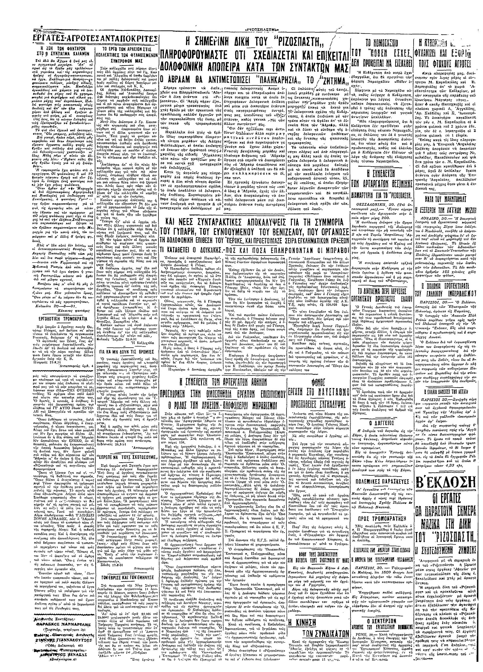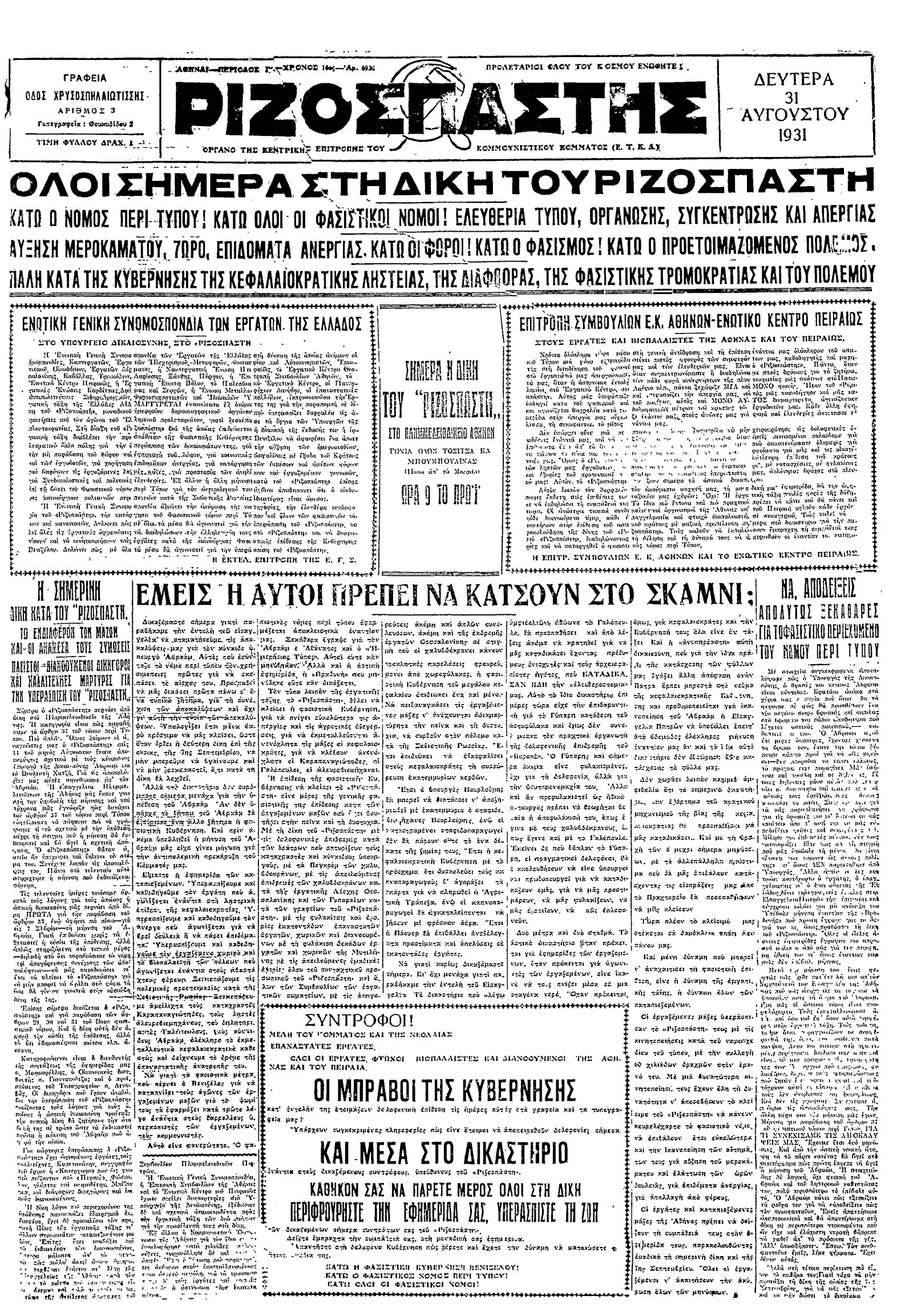 Ριζοσπάστης 31/08/1931
