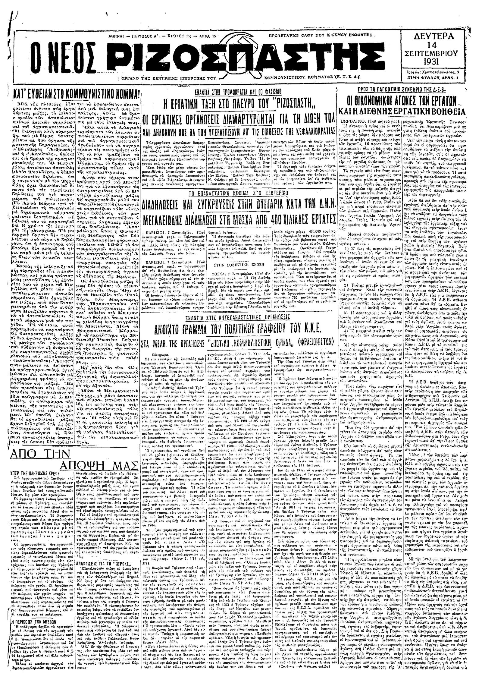 Ριζοσπάστης 14/09/1931