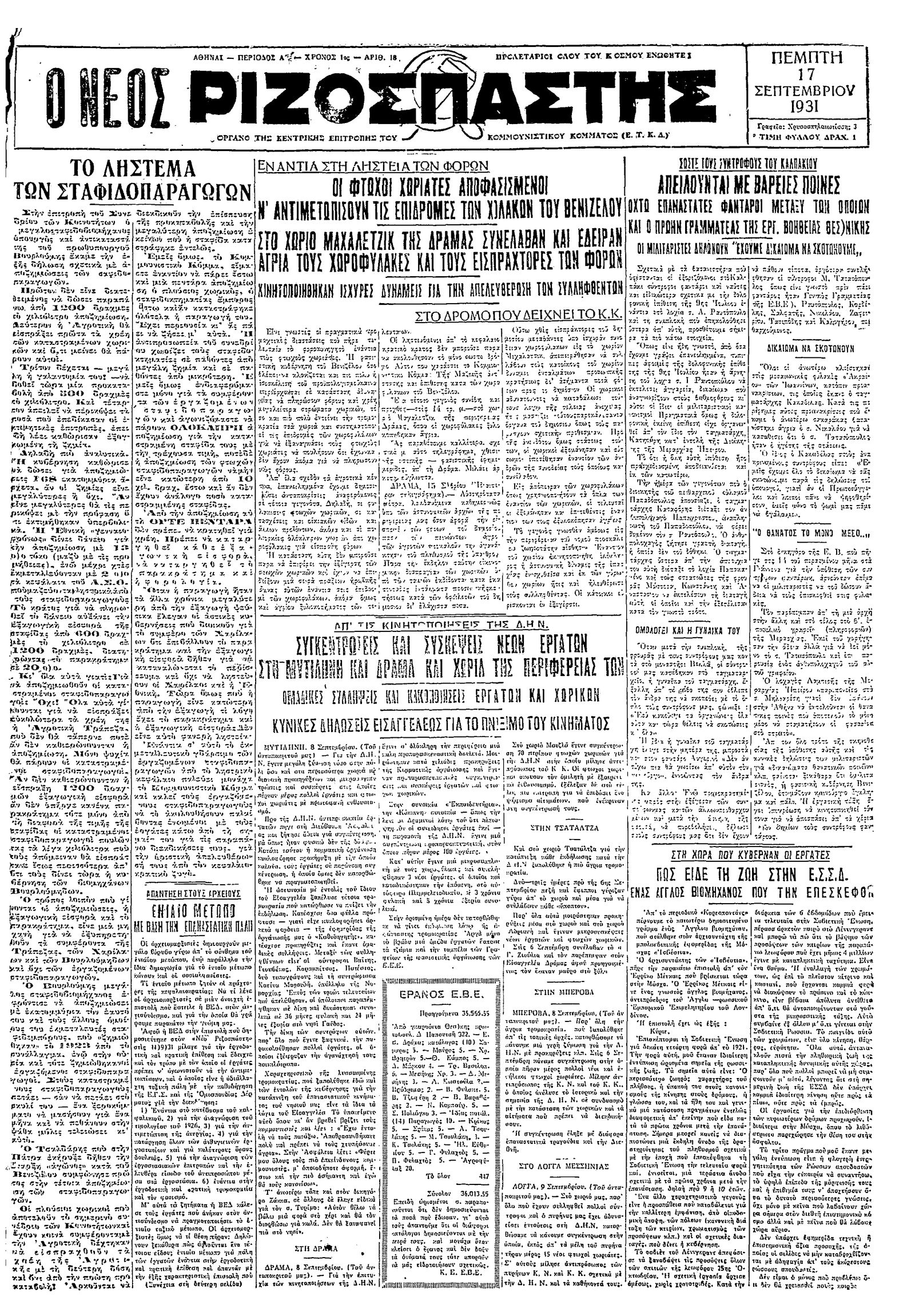 Ριζοσπάστης 17/09/1931