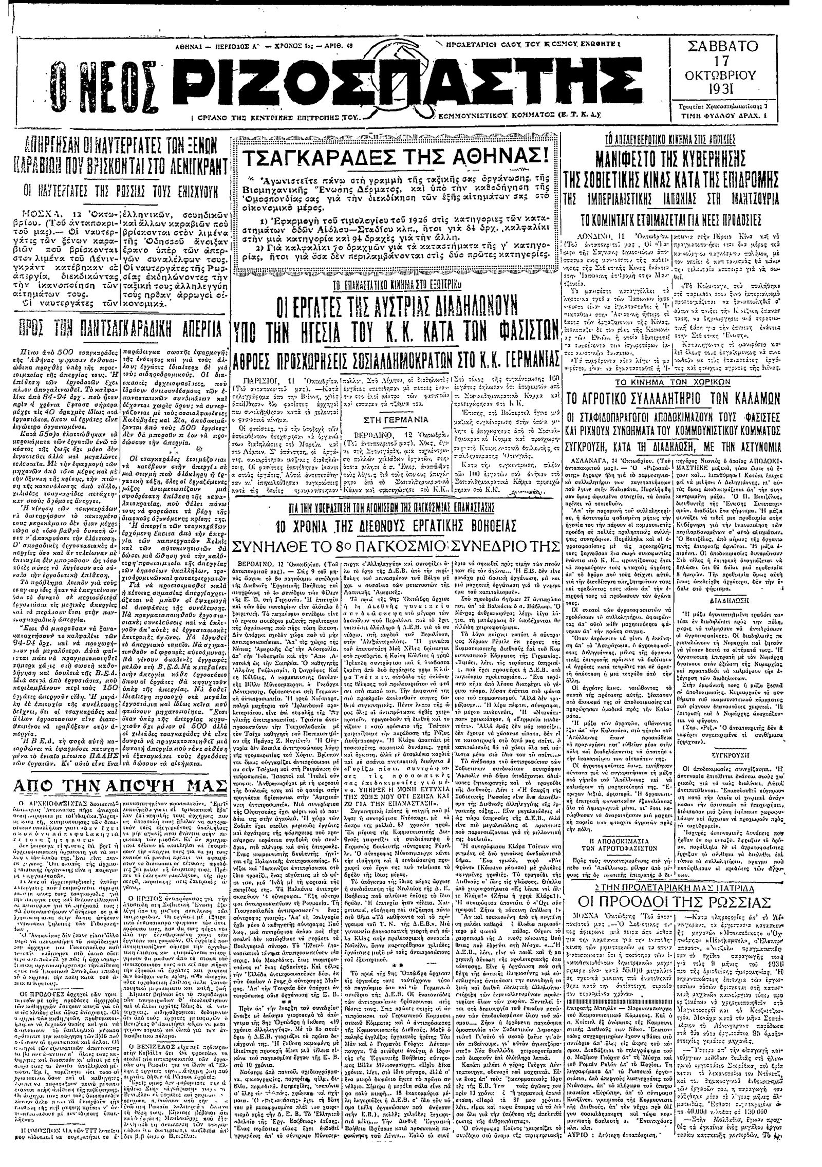 Ριζοσπάστης 17/10/1931
