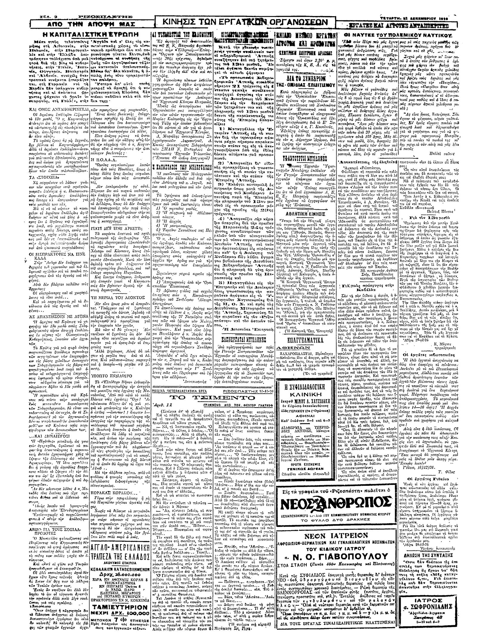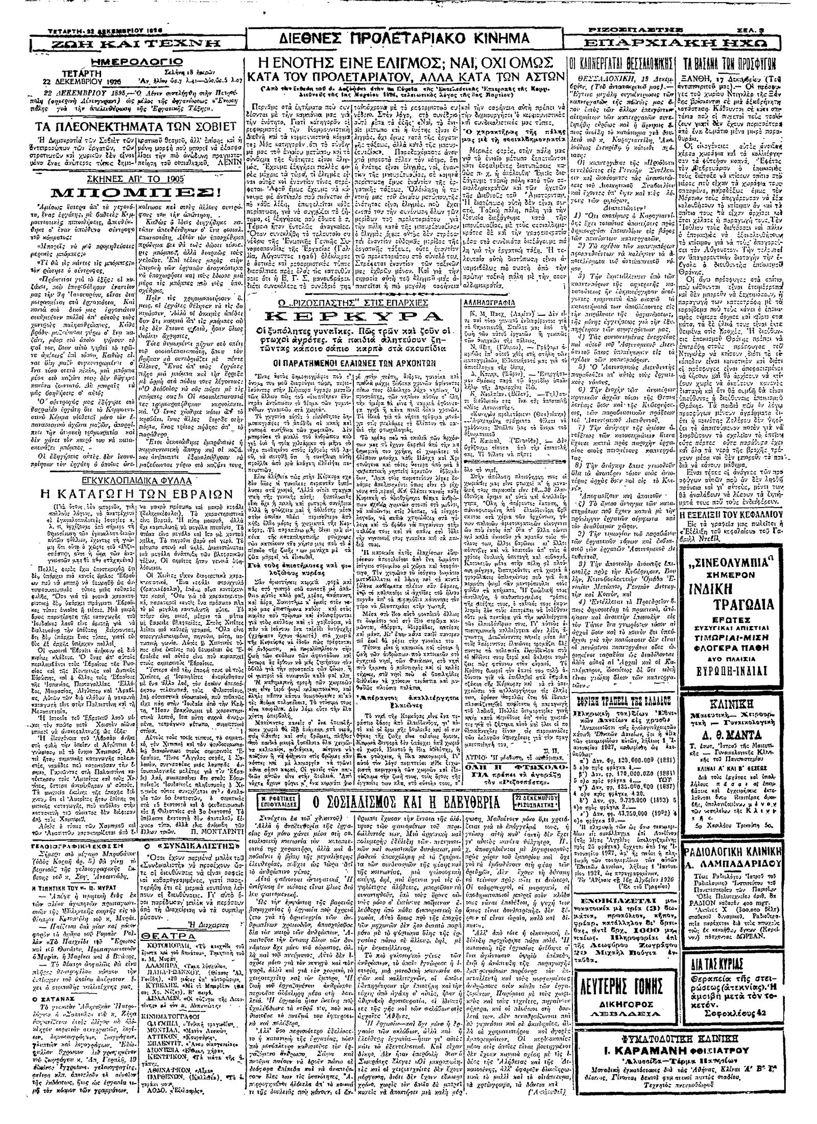 Ριζοσπάστης 22/12/1926