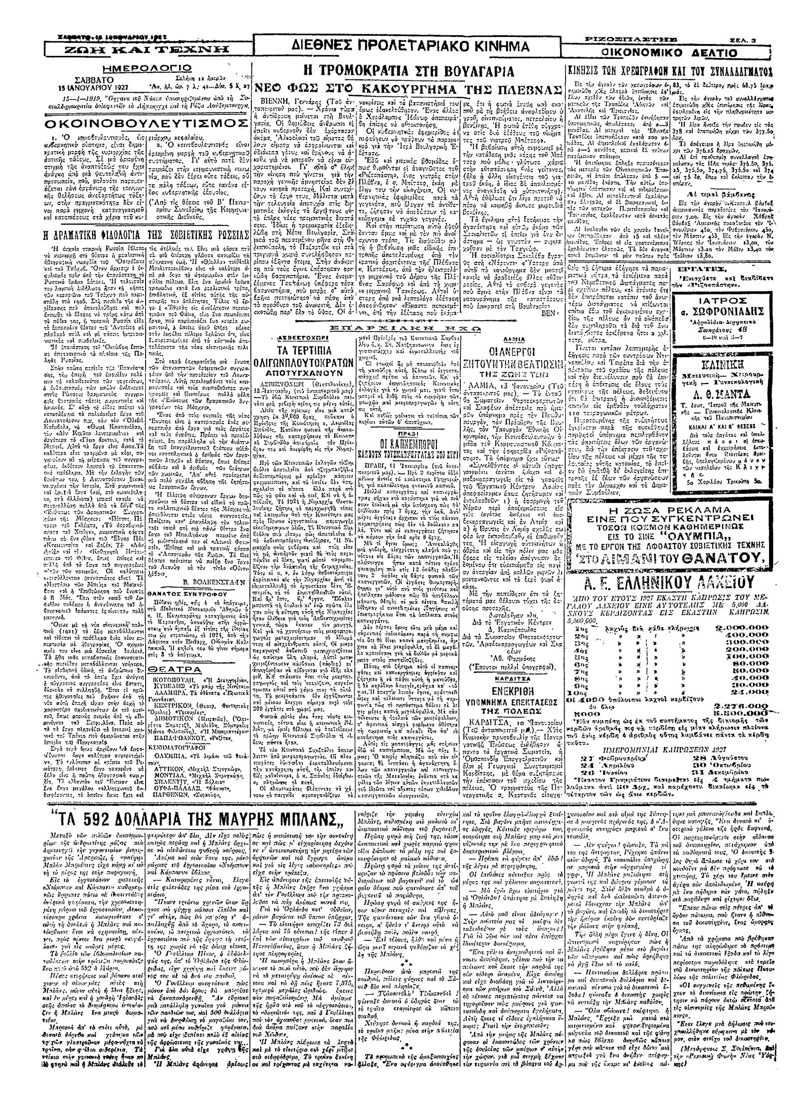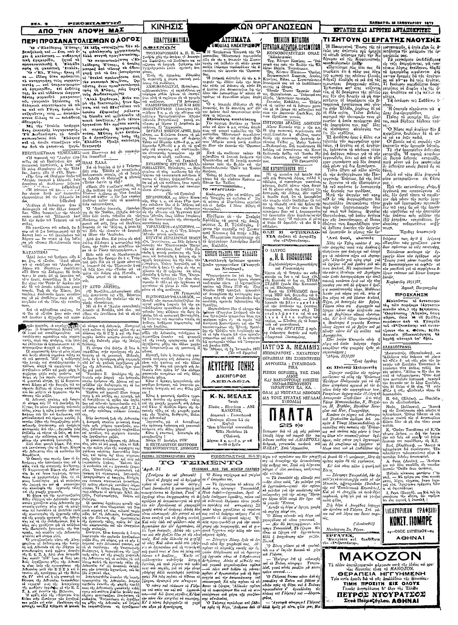 Ριζοσπάστης 15/01/1927