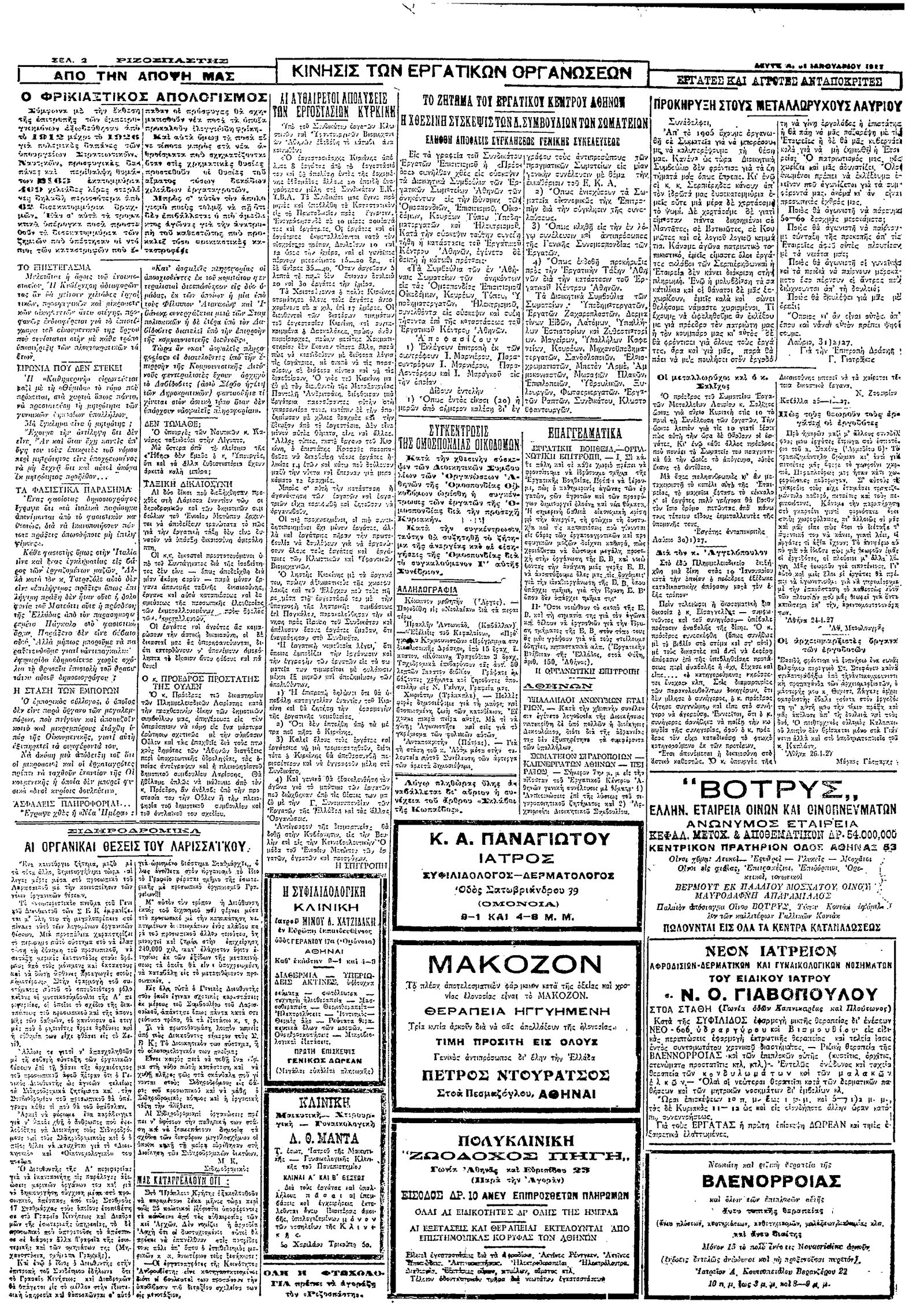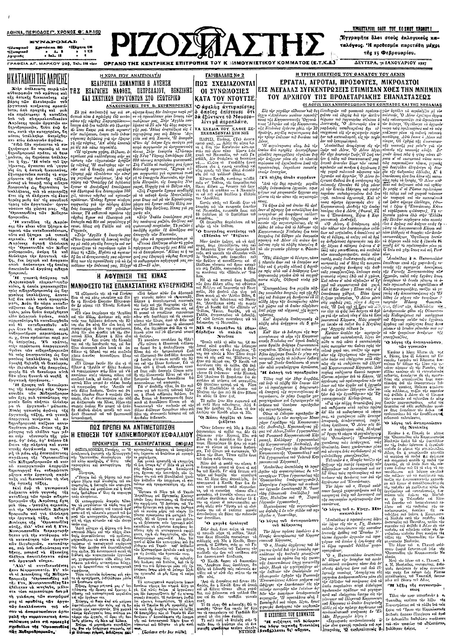 Ριζοσπάστης 31/01/1927