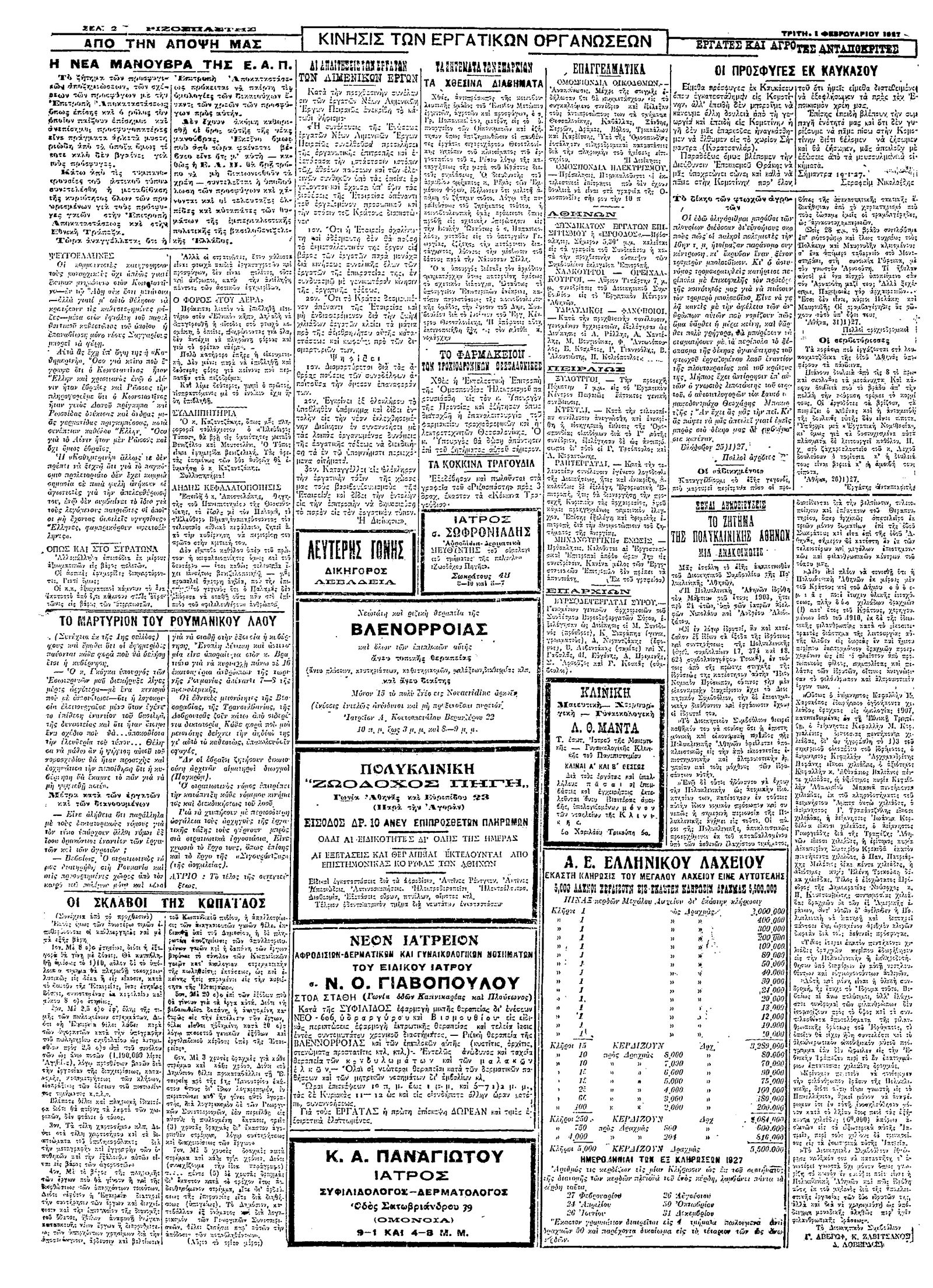 Ριζοσπάστης 01/02/1927
