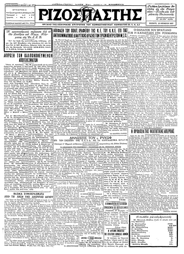 Ριζοσπάστης 26/11/1927