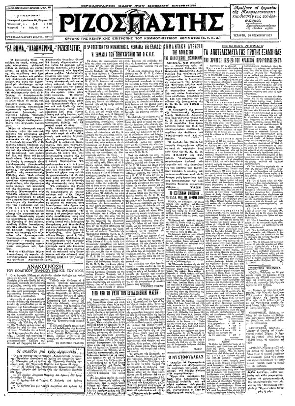 Ριζοσπάστης 30/11/1927