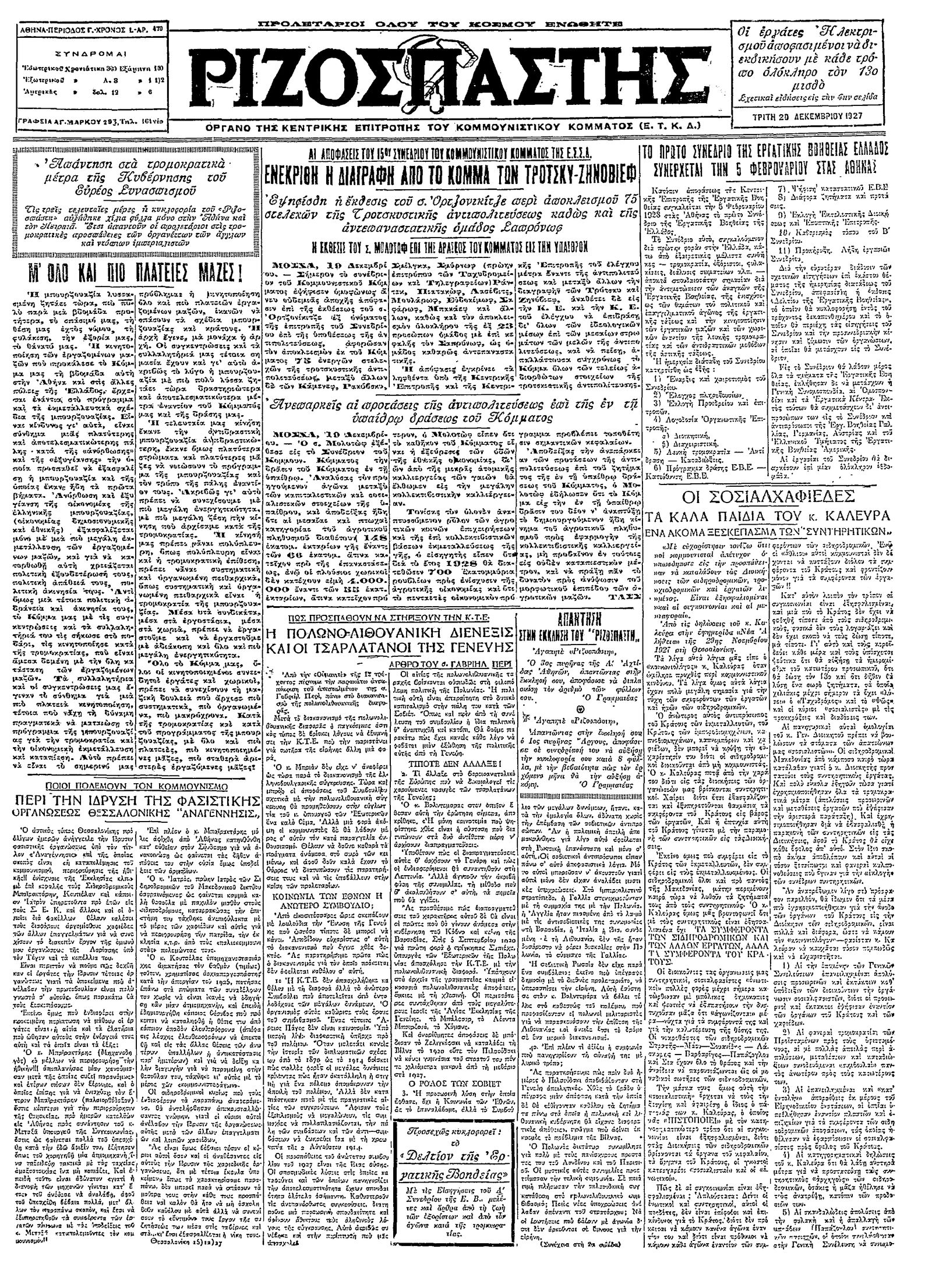Ριζοσπάστης 20/12/1927
