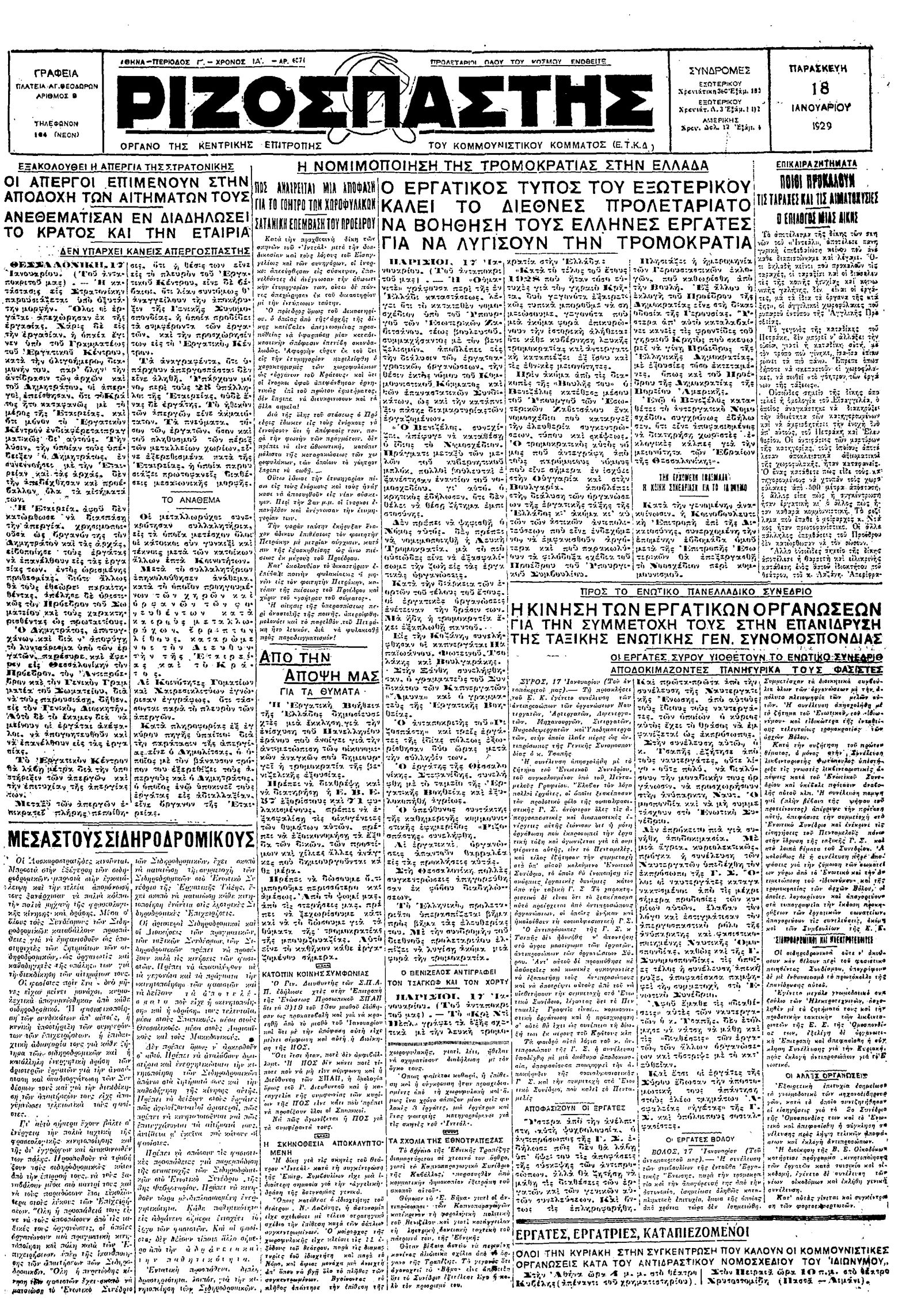 Ριζοσπάστης 18/01/1929