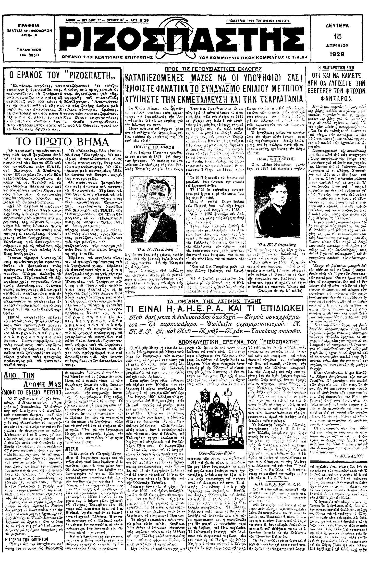 Ριζοσπάστης 15/04/1929