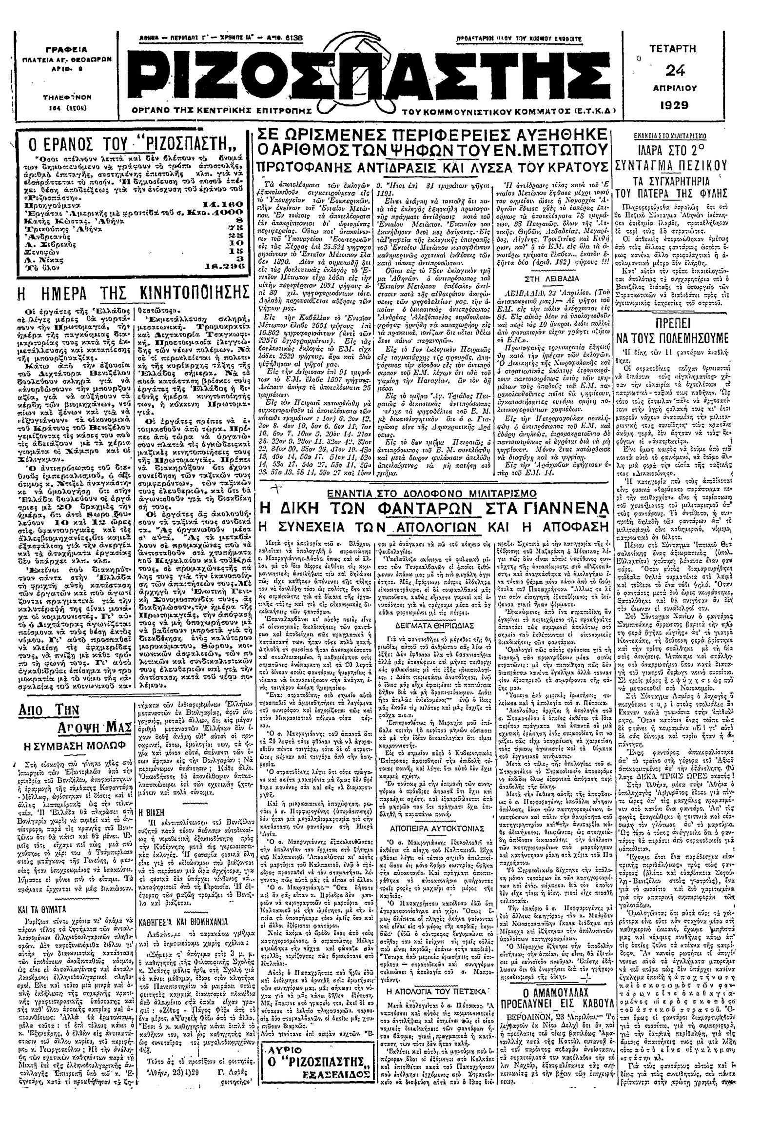 Ριζοσπάστης 24/04/1929