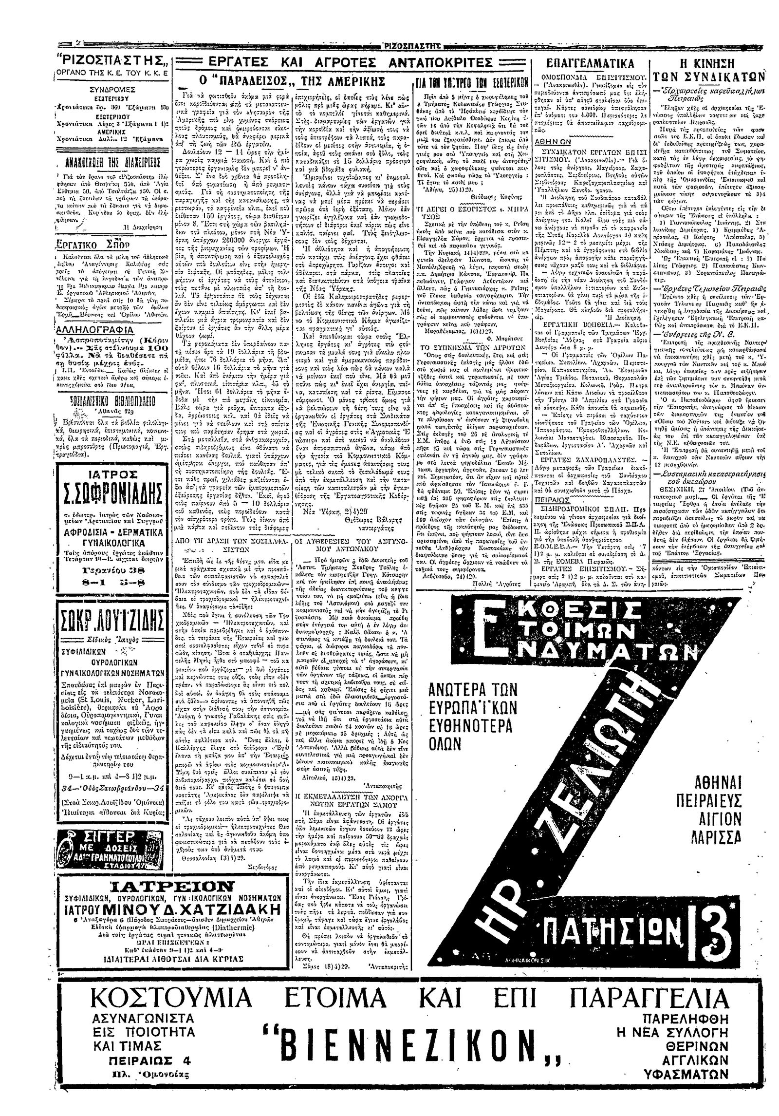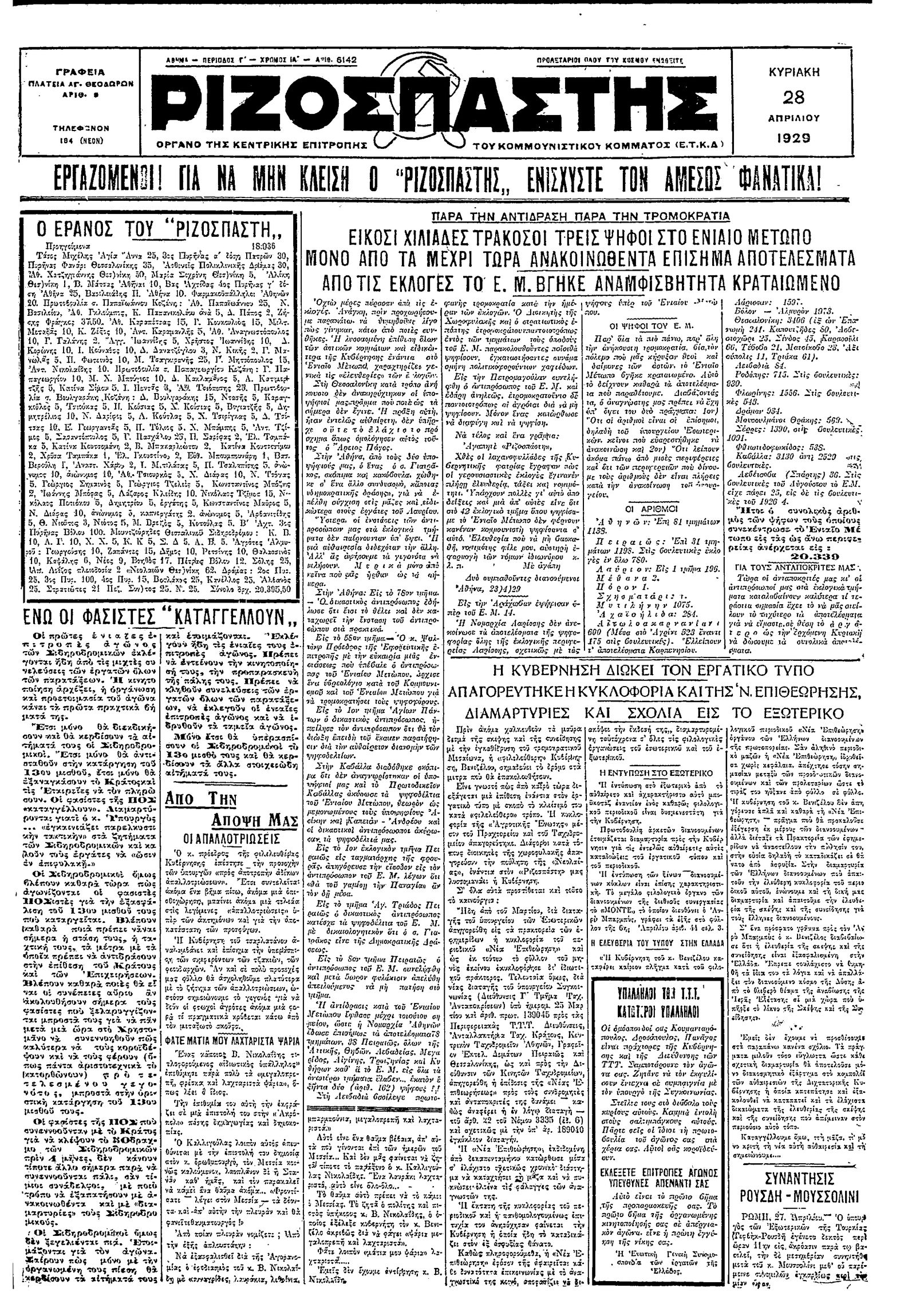 Ριζοσπάστης 28/04/1929