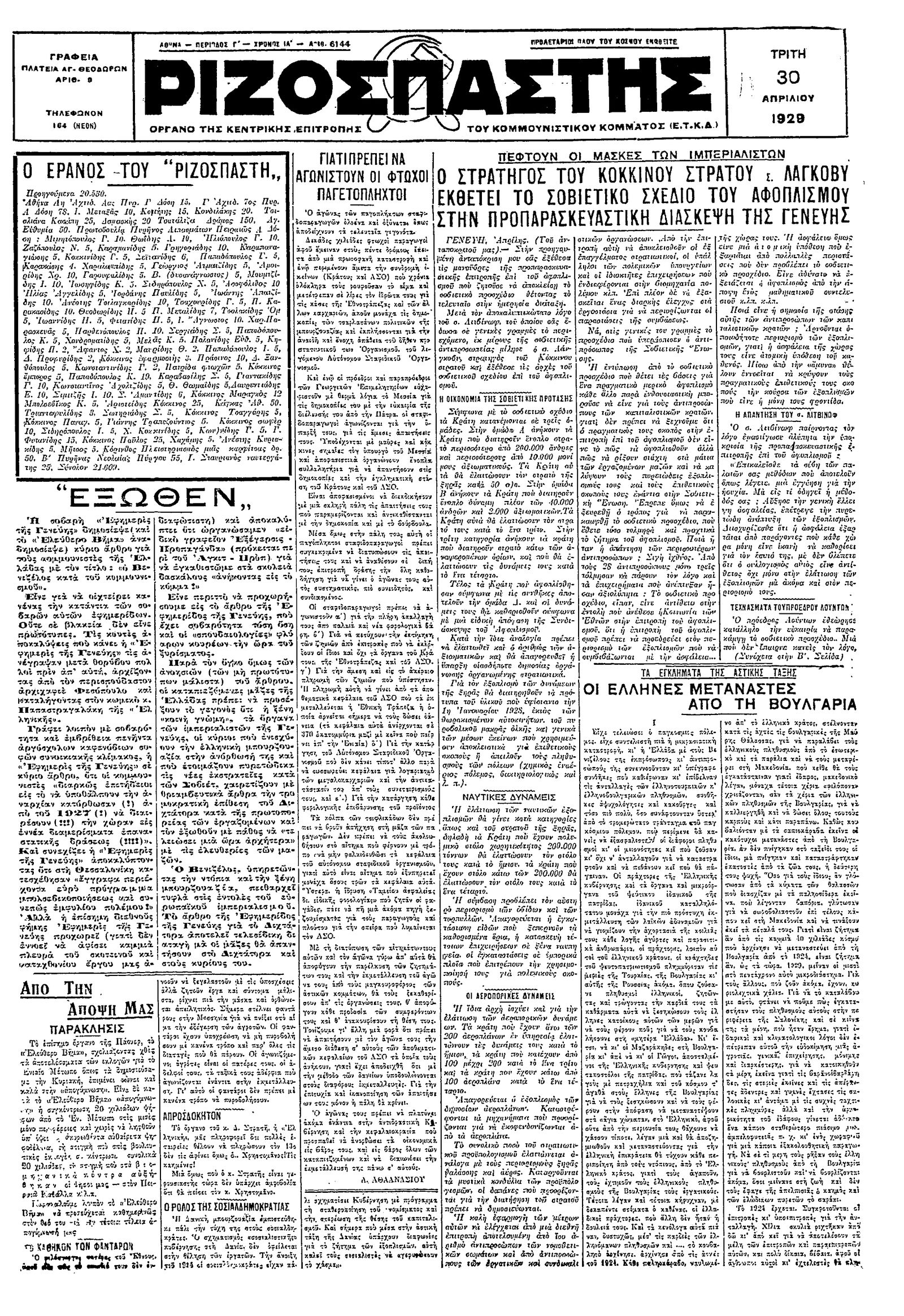 Ριζοσπάστης 30/04/1929
