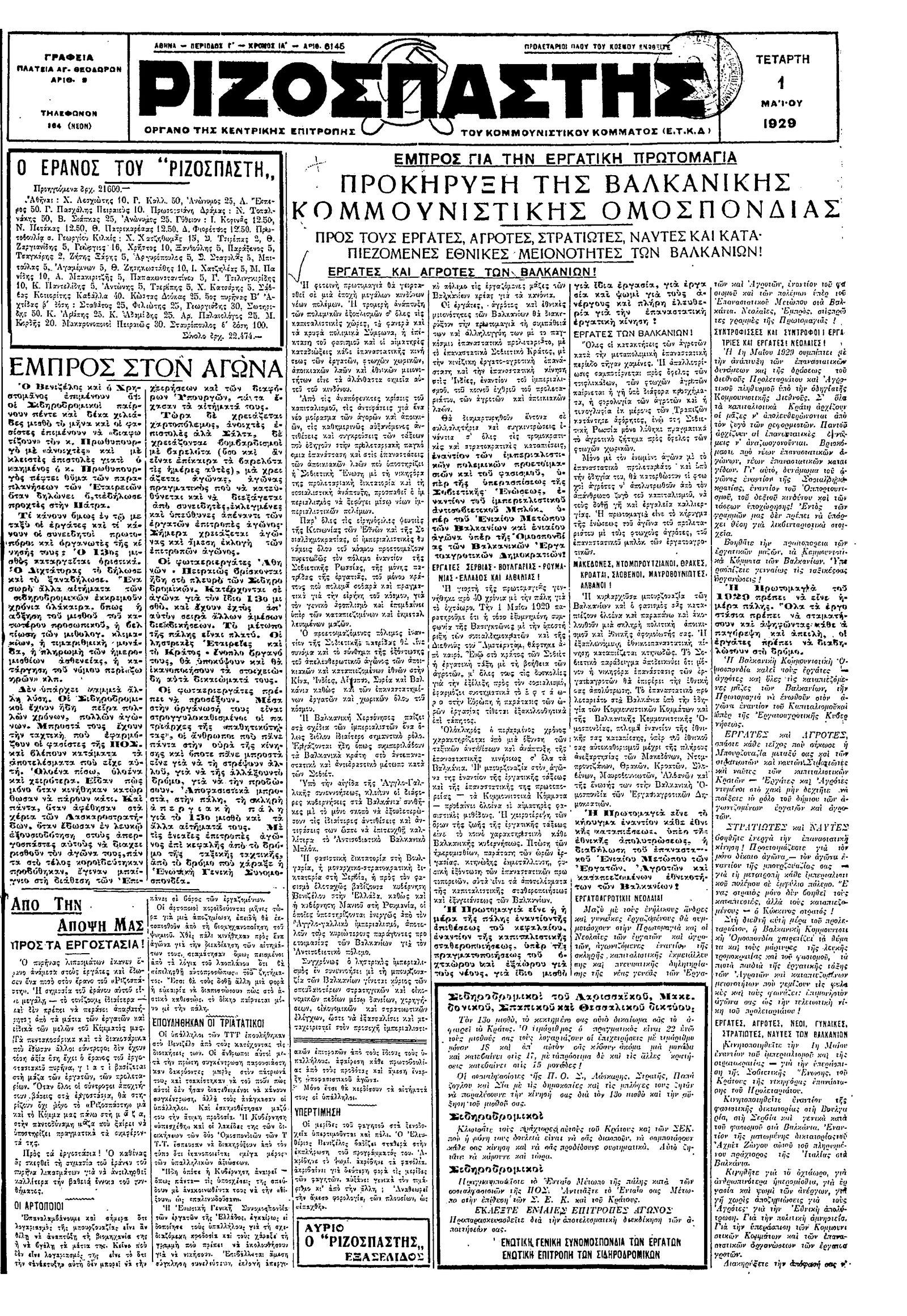 Ριζοσπάστης 01/05/1929