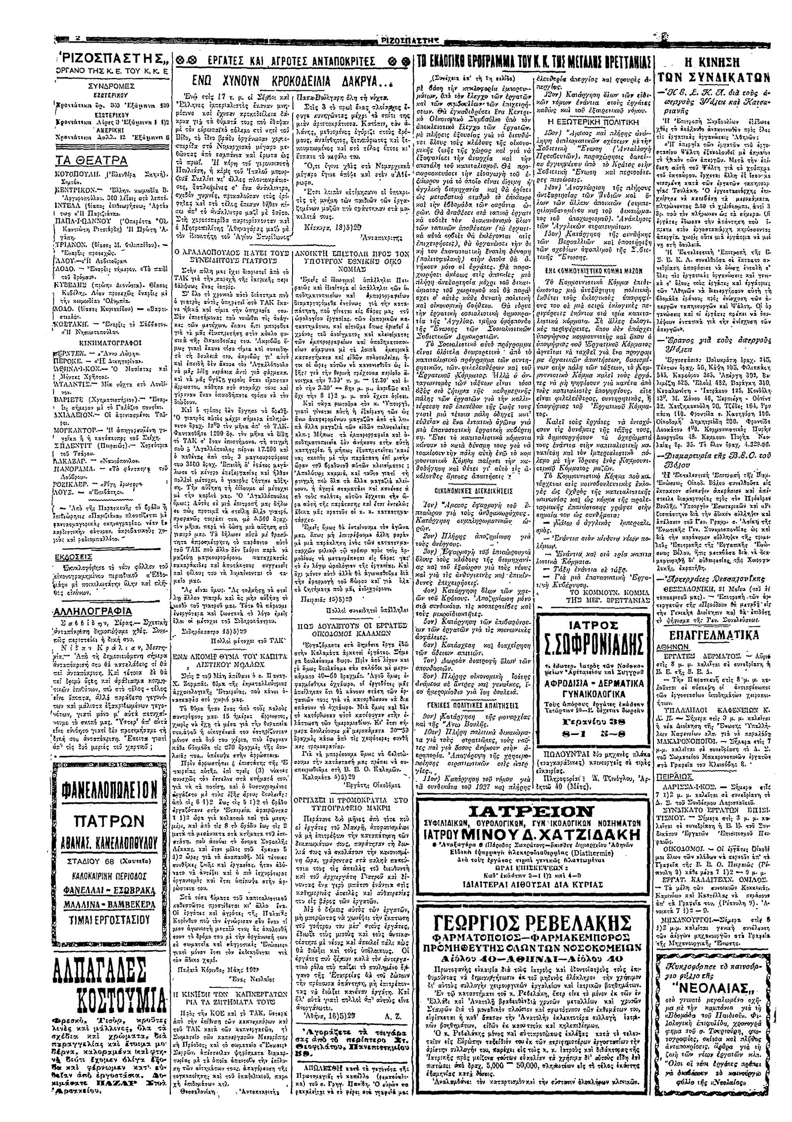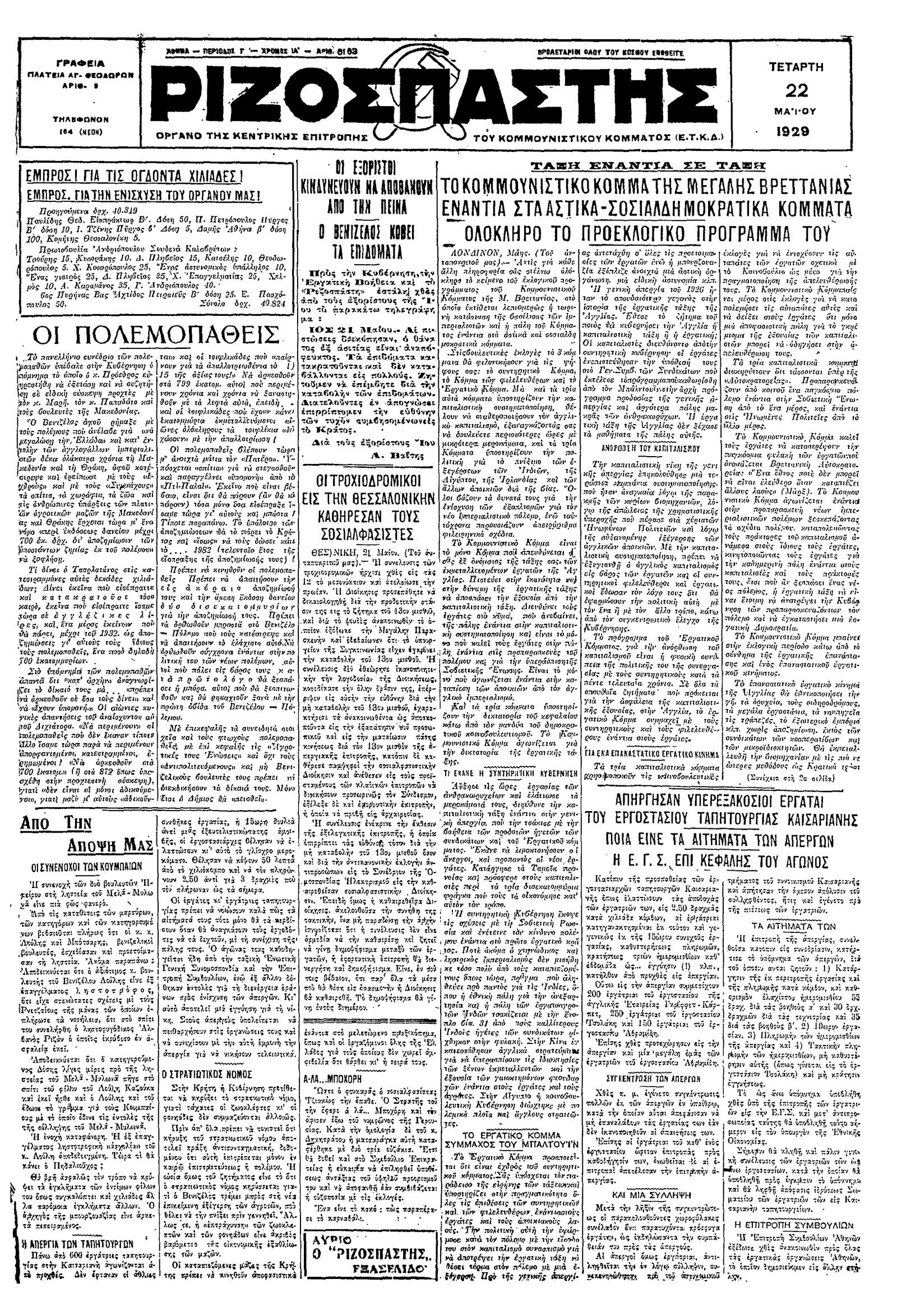 Ριζοσπάστης 22/05/1929