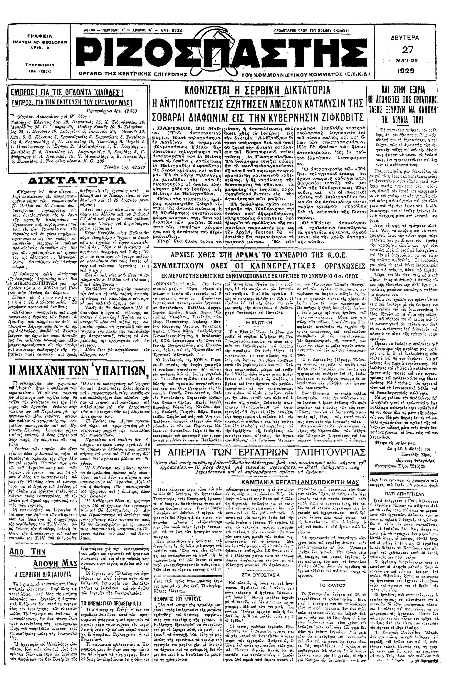 Ριζοσπάστης 27/05/1929
