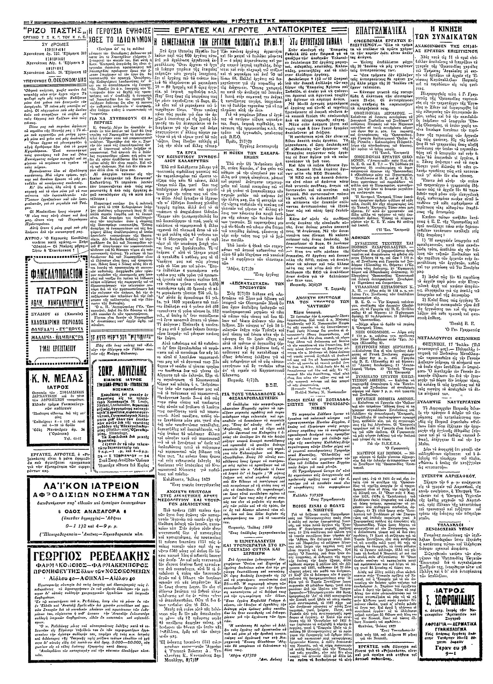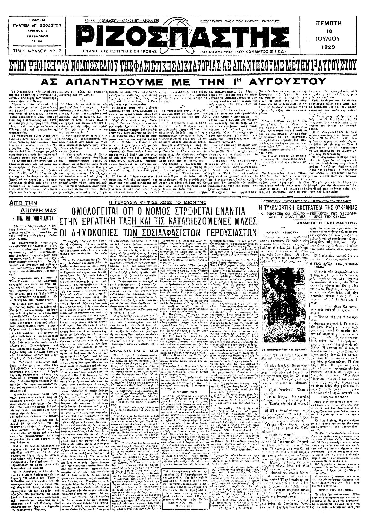 Ριζοσπάστης 18/07/1929