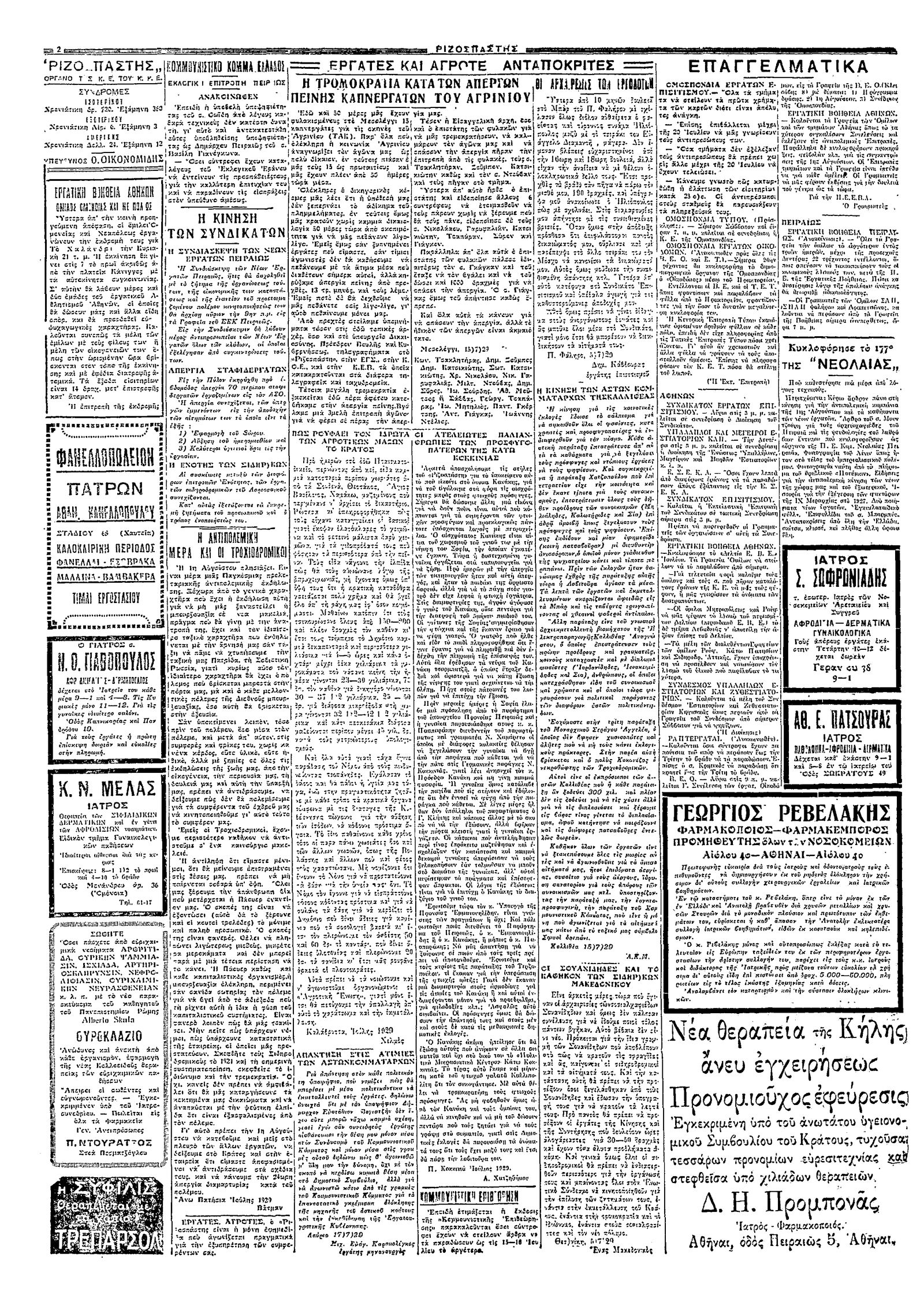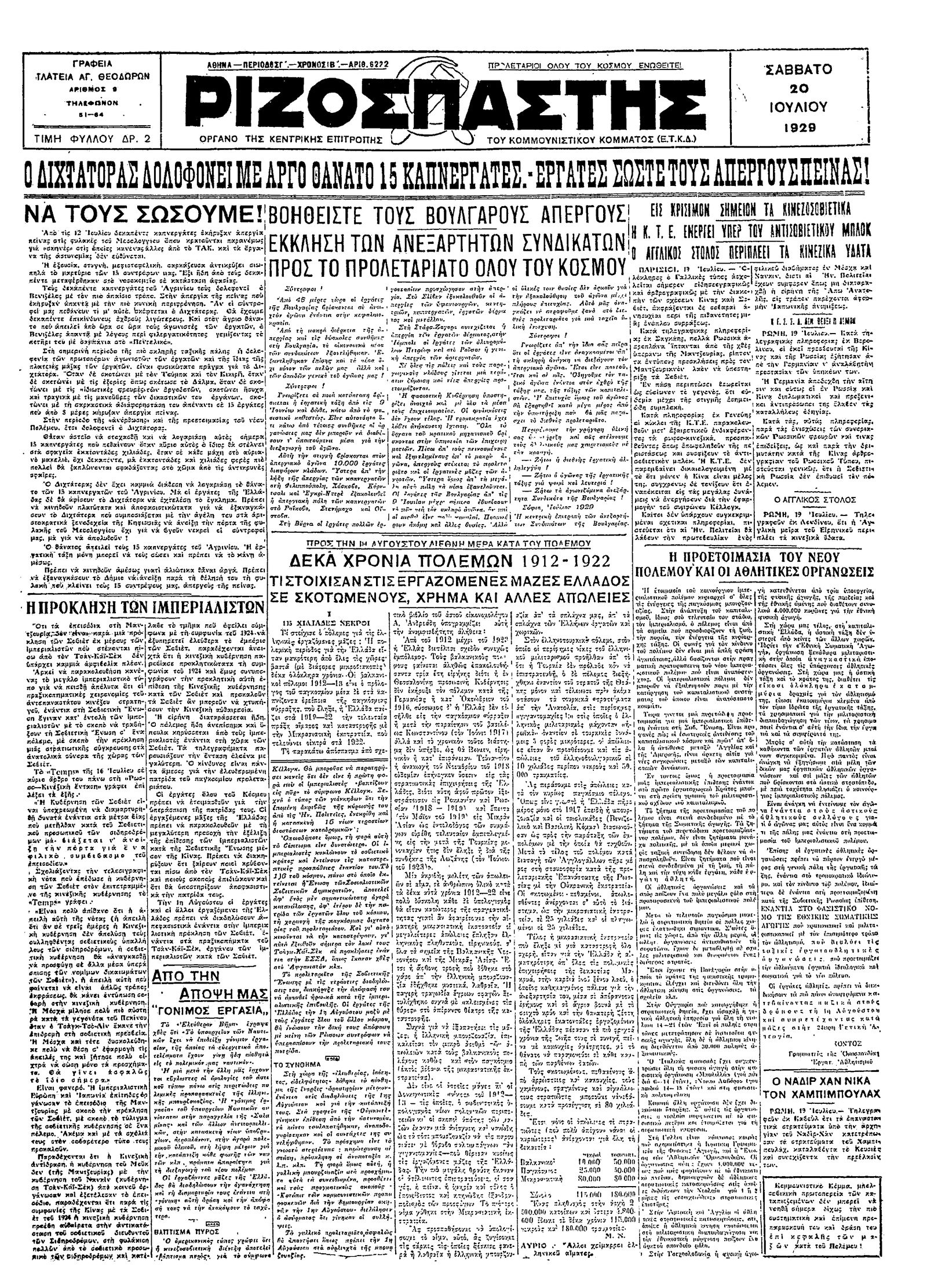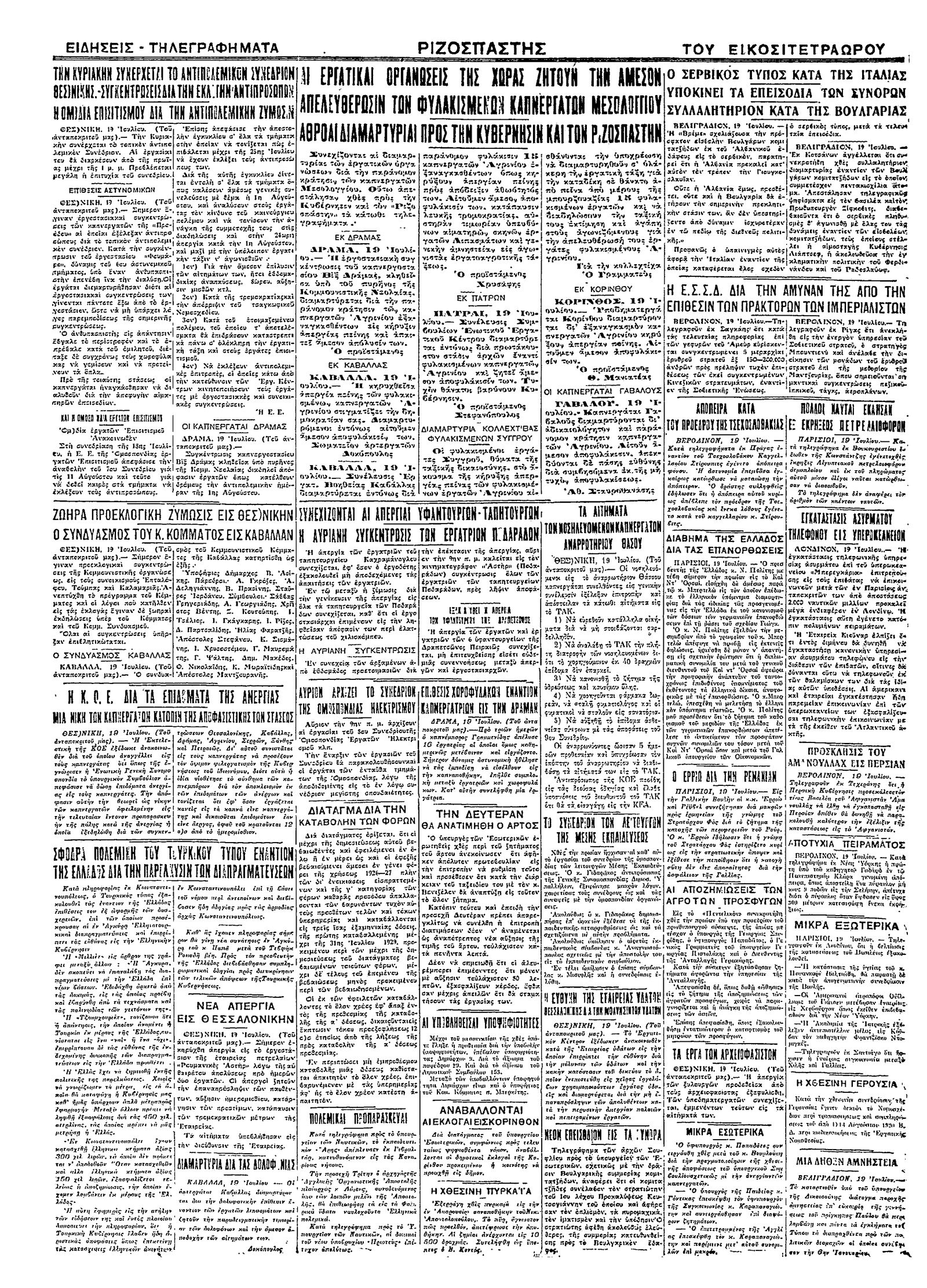 Ριζοσπάστης 20/07/1929