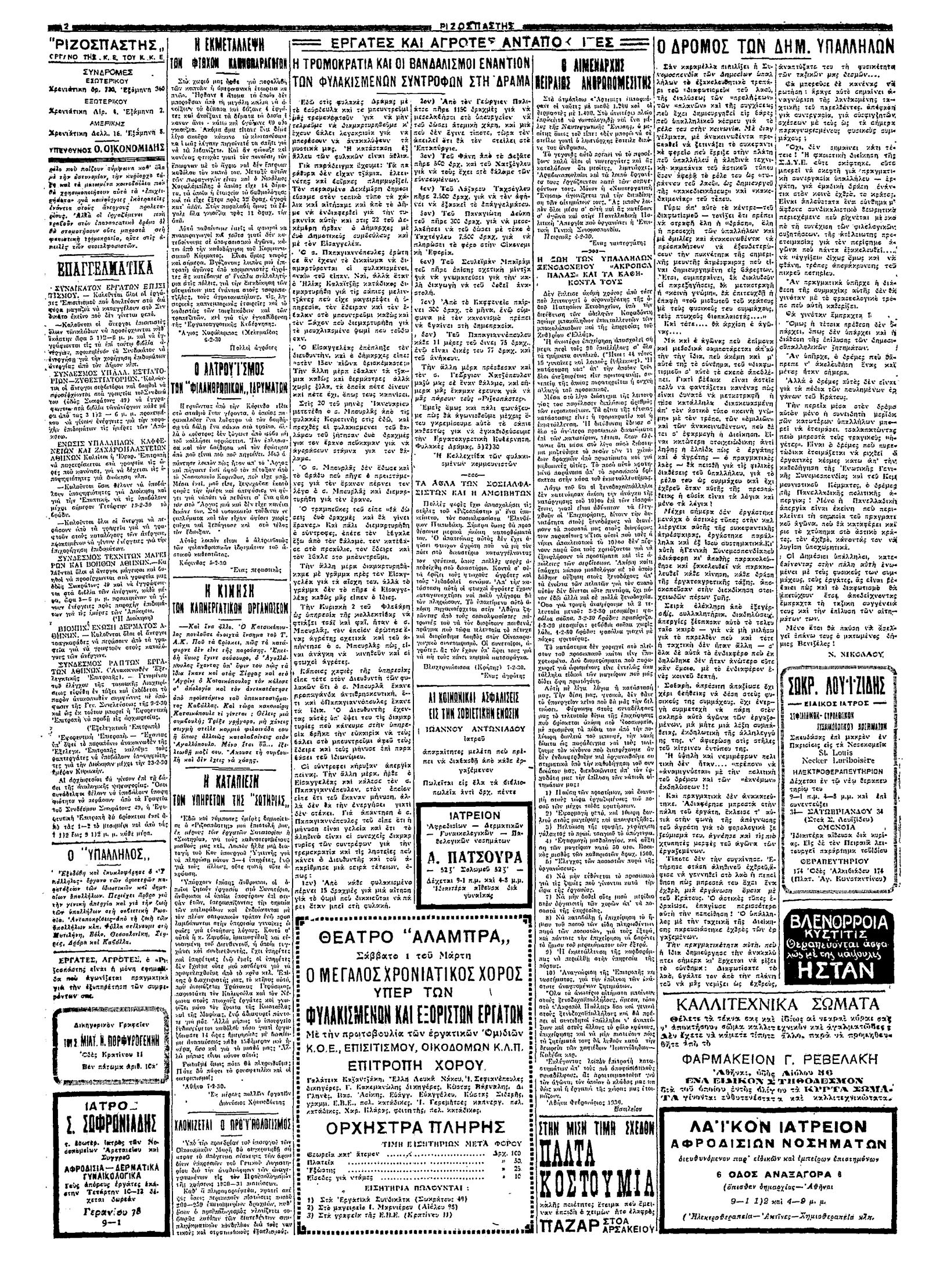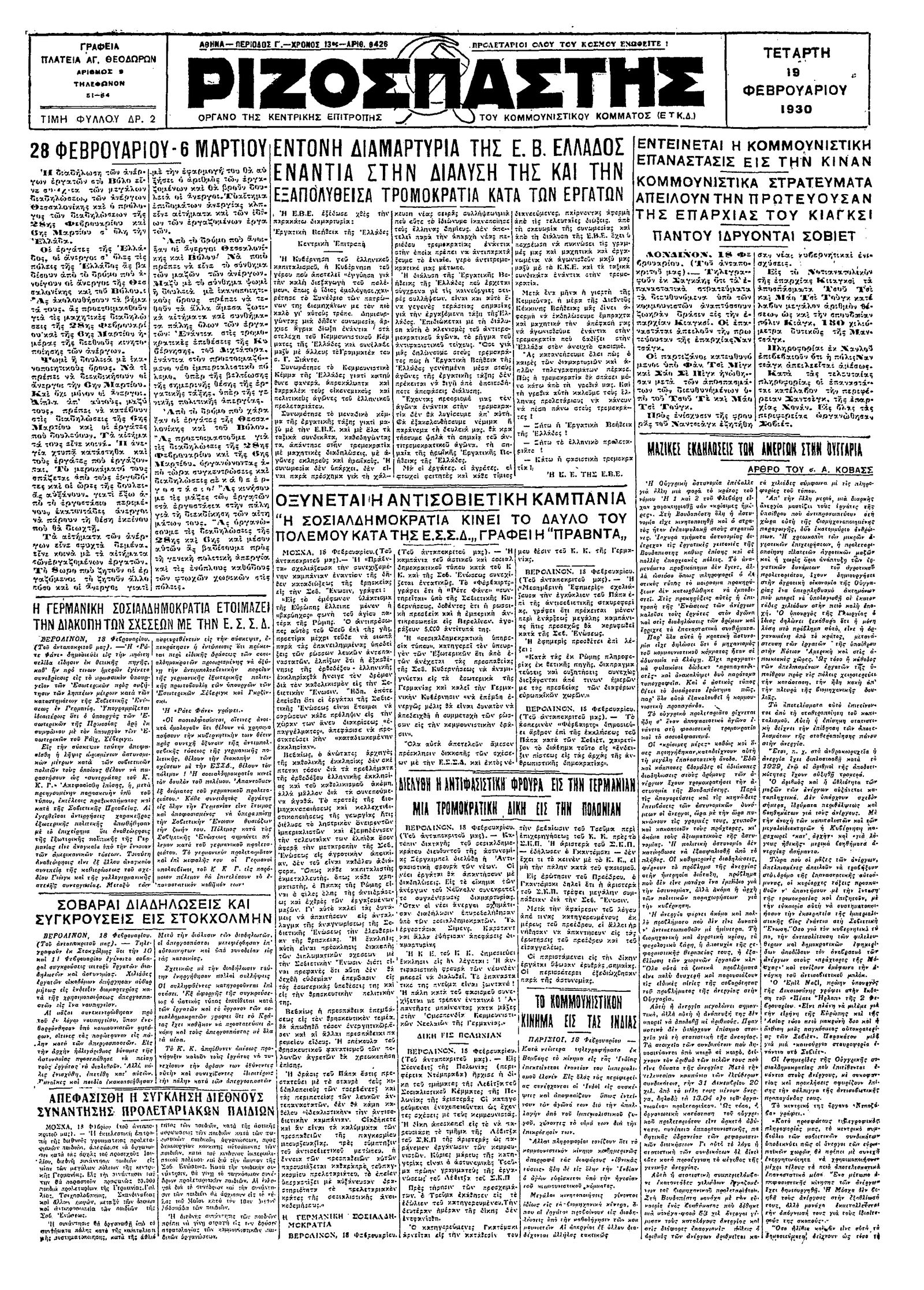 Ριζοσπάστης 19/02/1930