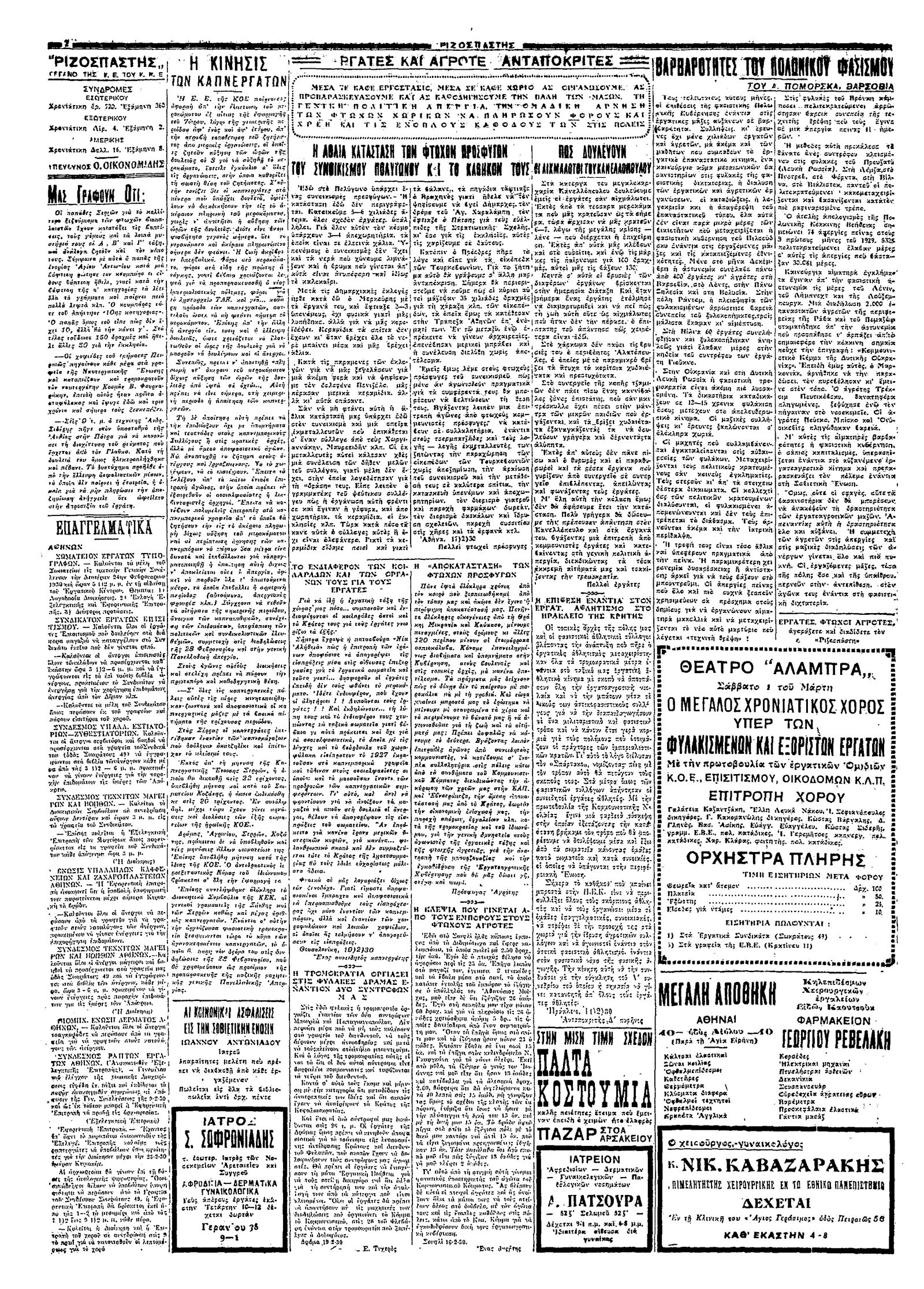 Ριζοσπάστης 23/02/1930