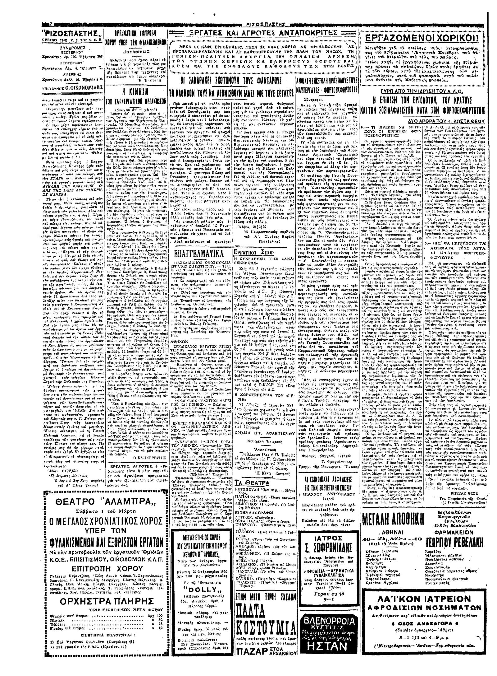 Ριζοσπάστης 26/02/1930