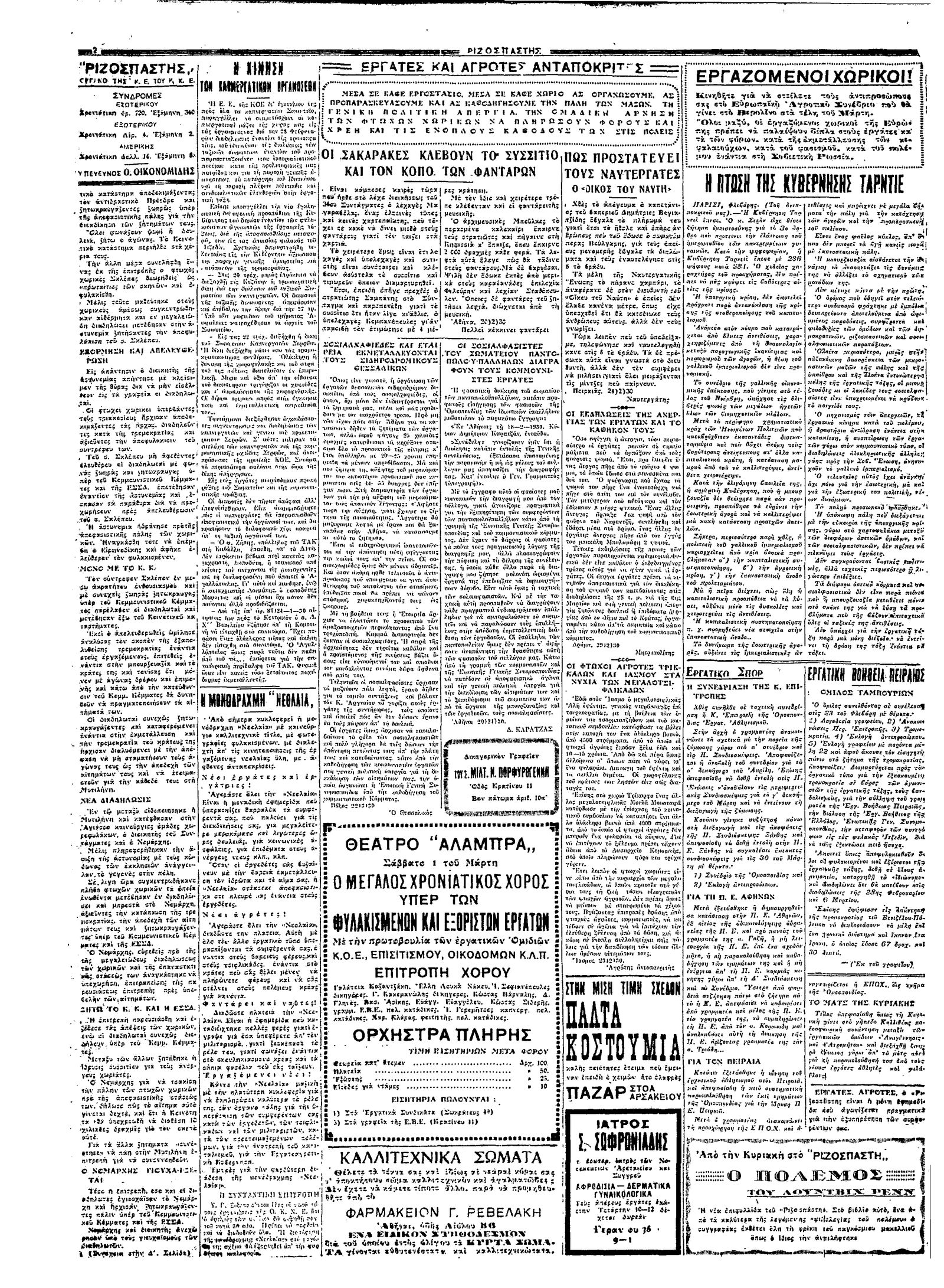 Ριζοσπάστης 28/02/1930