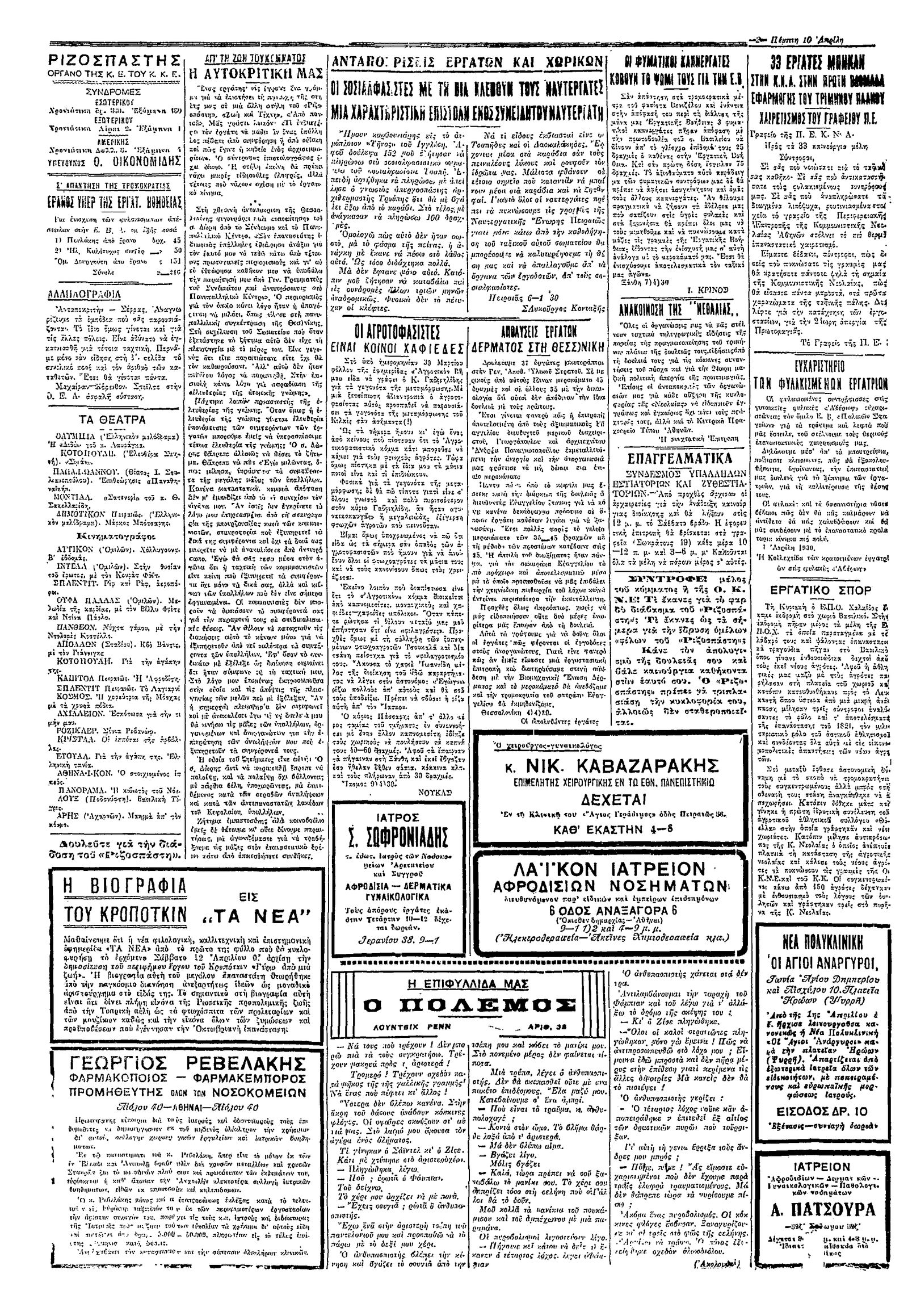 Ριζοσπάστης 10/04/1930