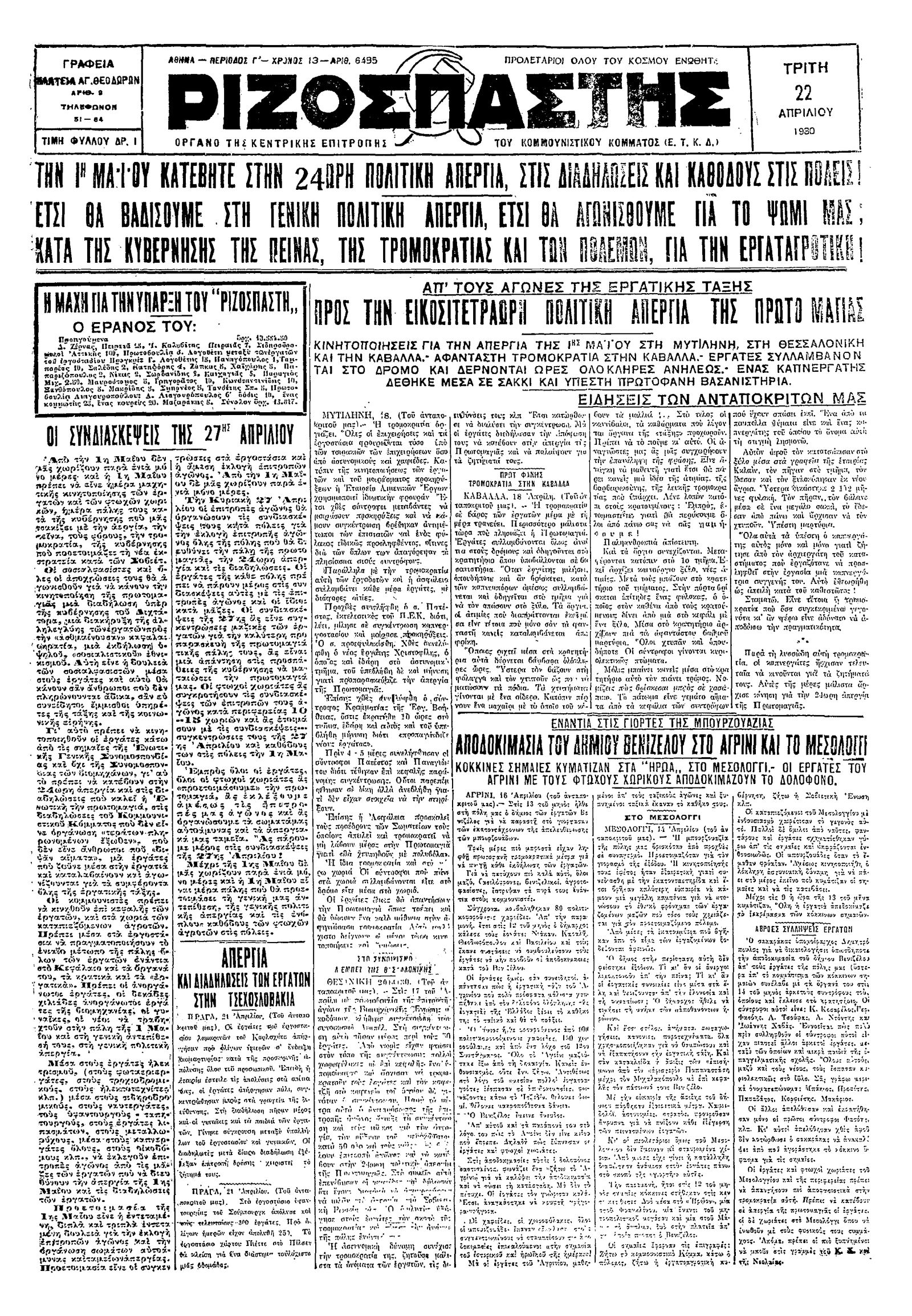 Ριζοσπάστης 22/04/1930