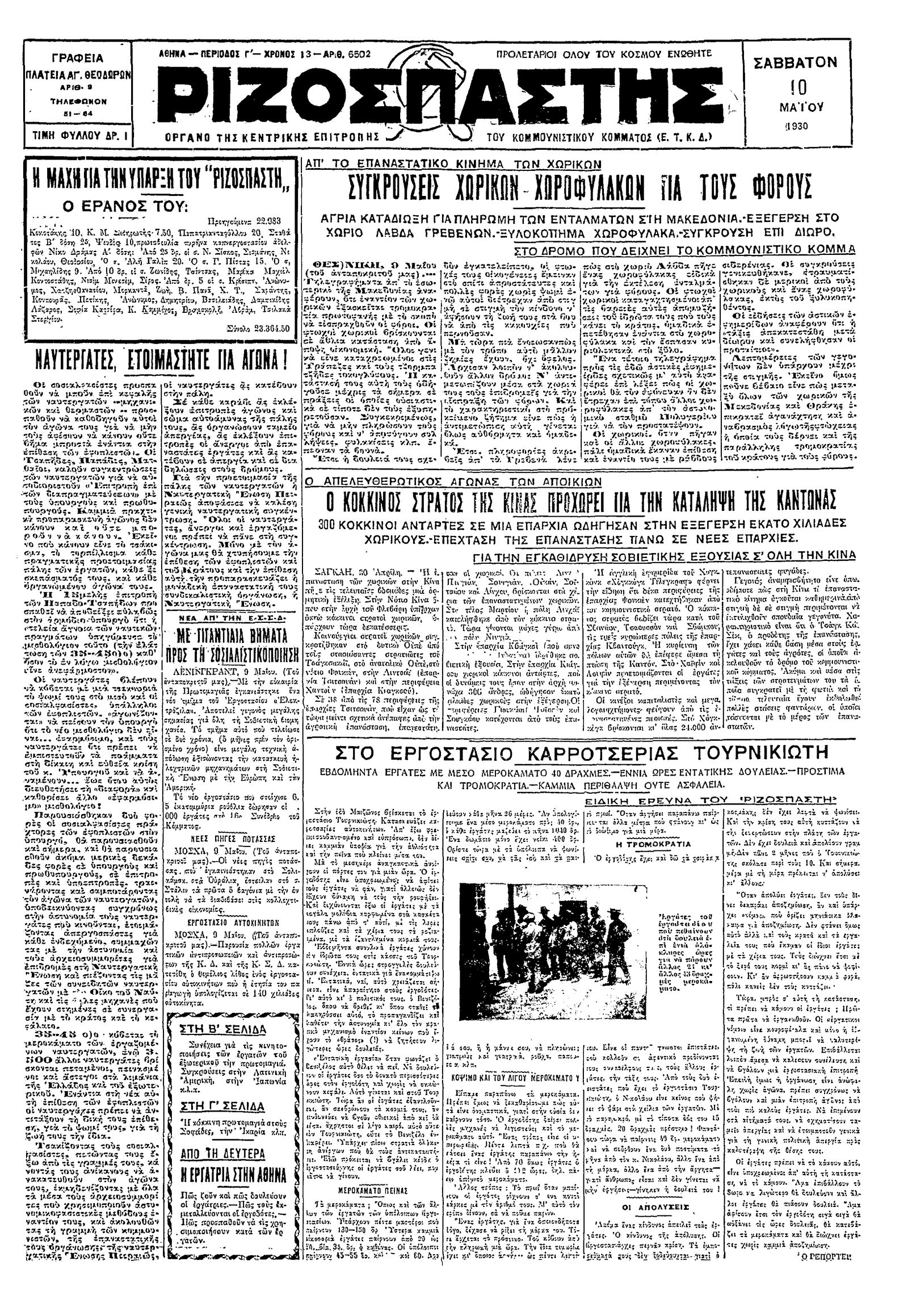Ριζοσπάστης 10/05/1930