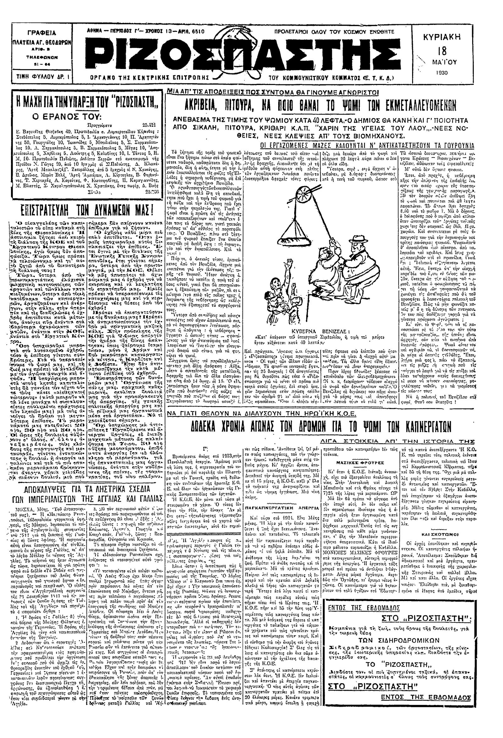 Ριζοσπάστης 18/05/1930
