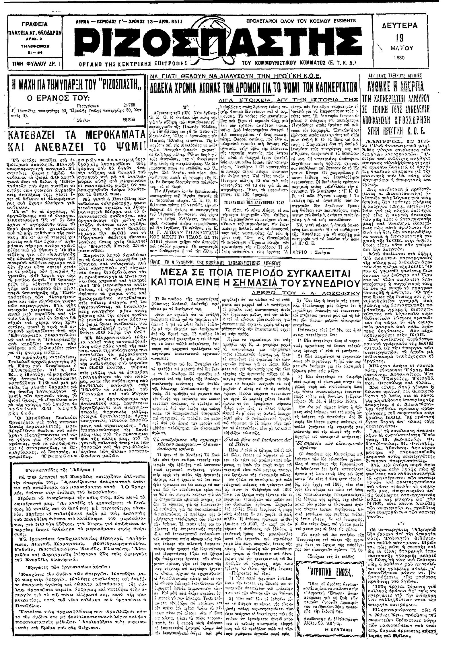 Ριζοσπάστης 19/05/1930