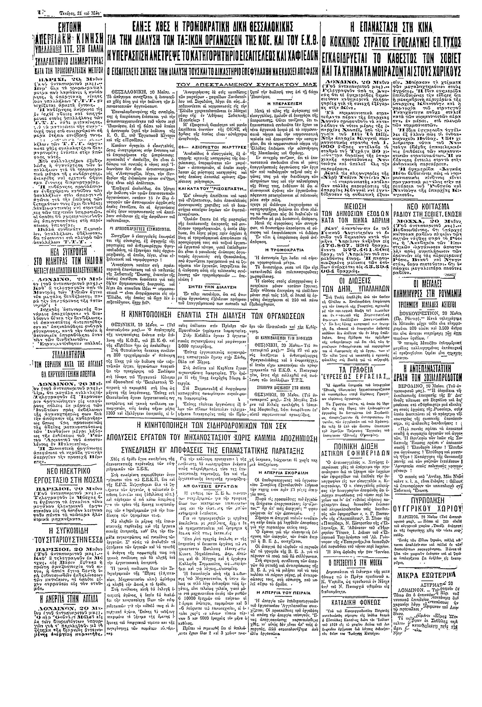 Ριζοσπάστης 21/05/1930