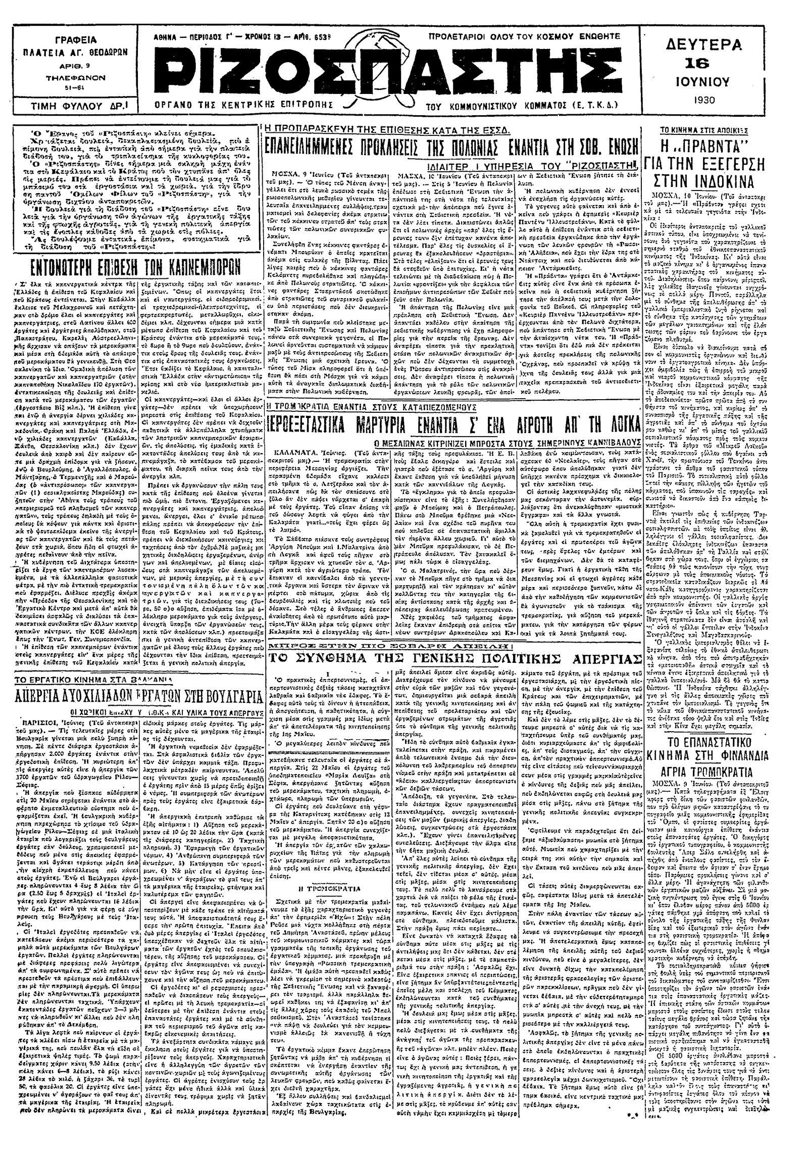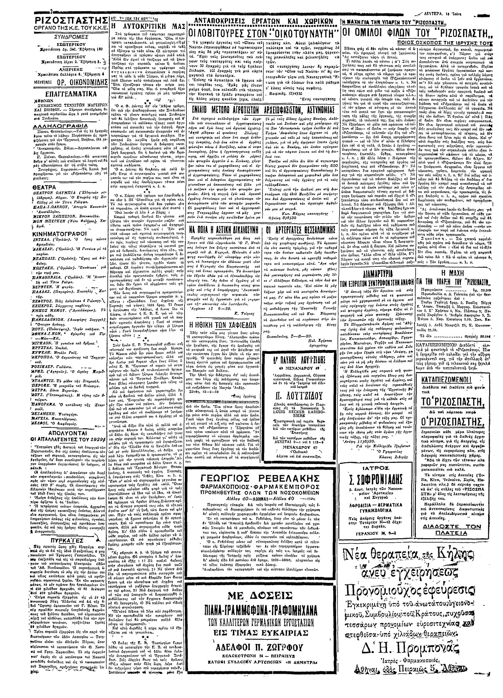 Ριζοσπάστης 16/06/1930