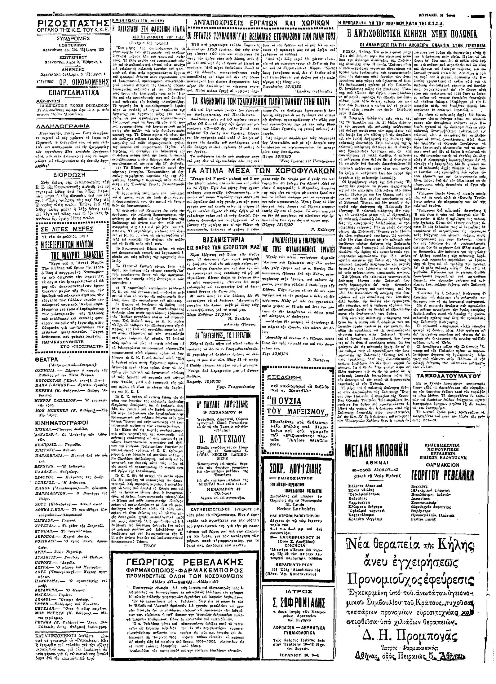 Ριζοσπάστης 22/06/1930