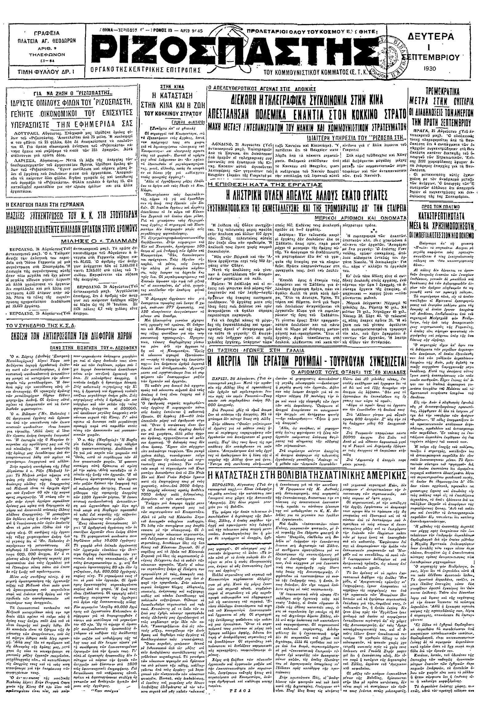 Ριζοσπάστης 01/09/1930