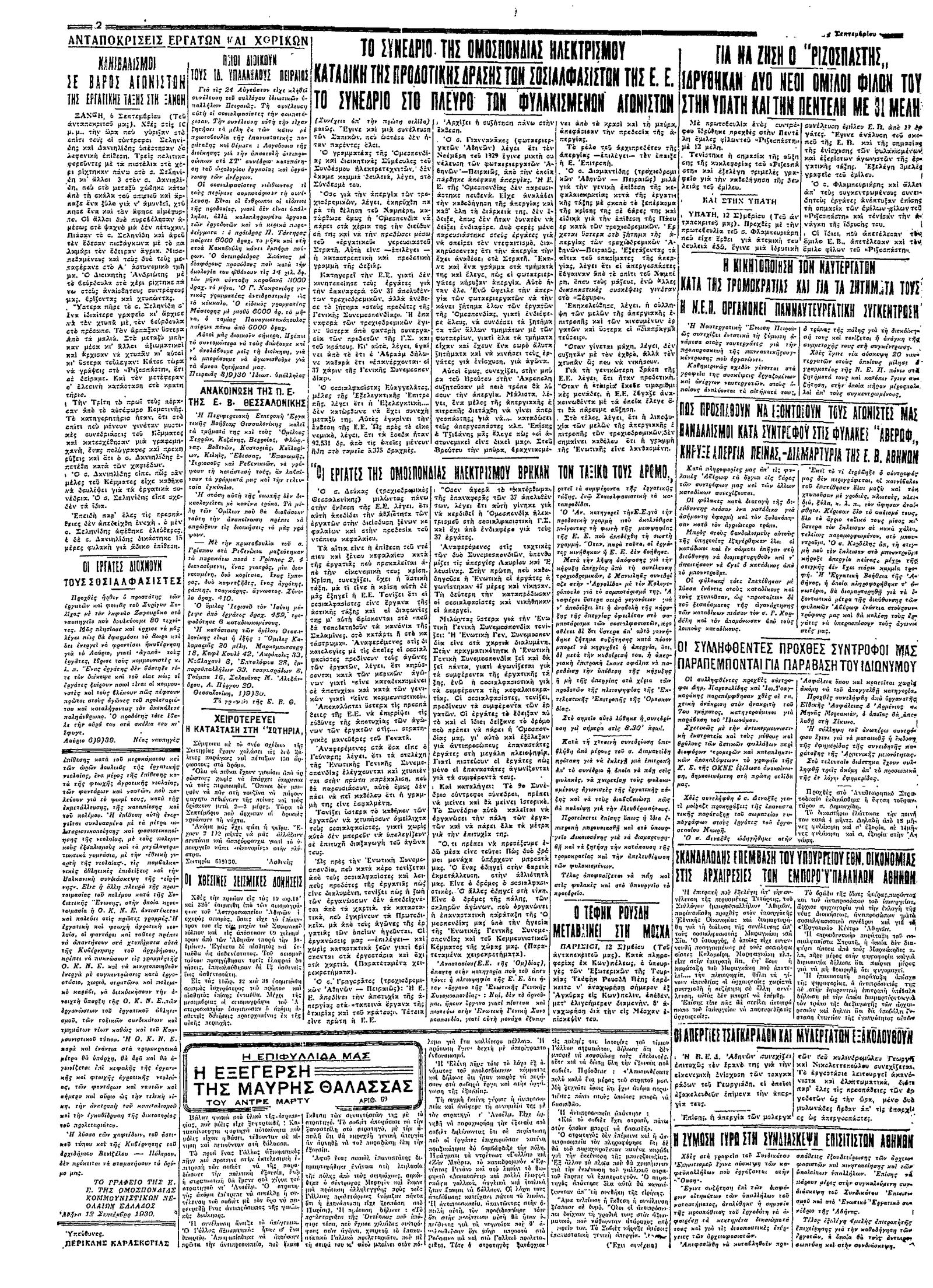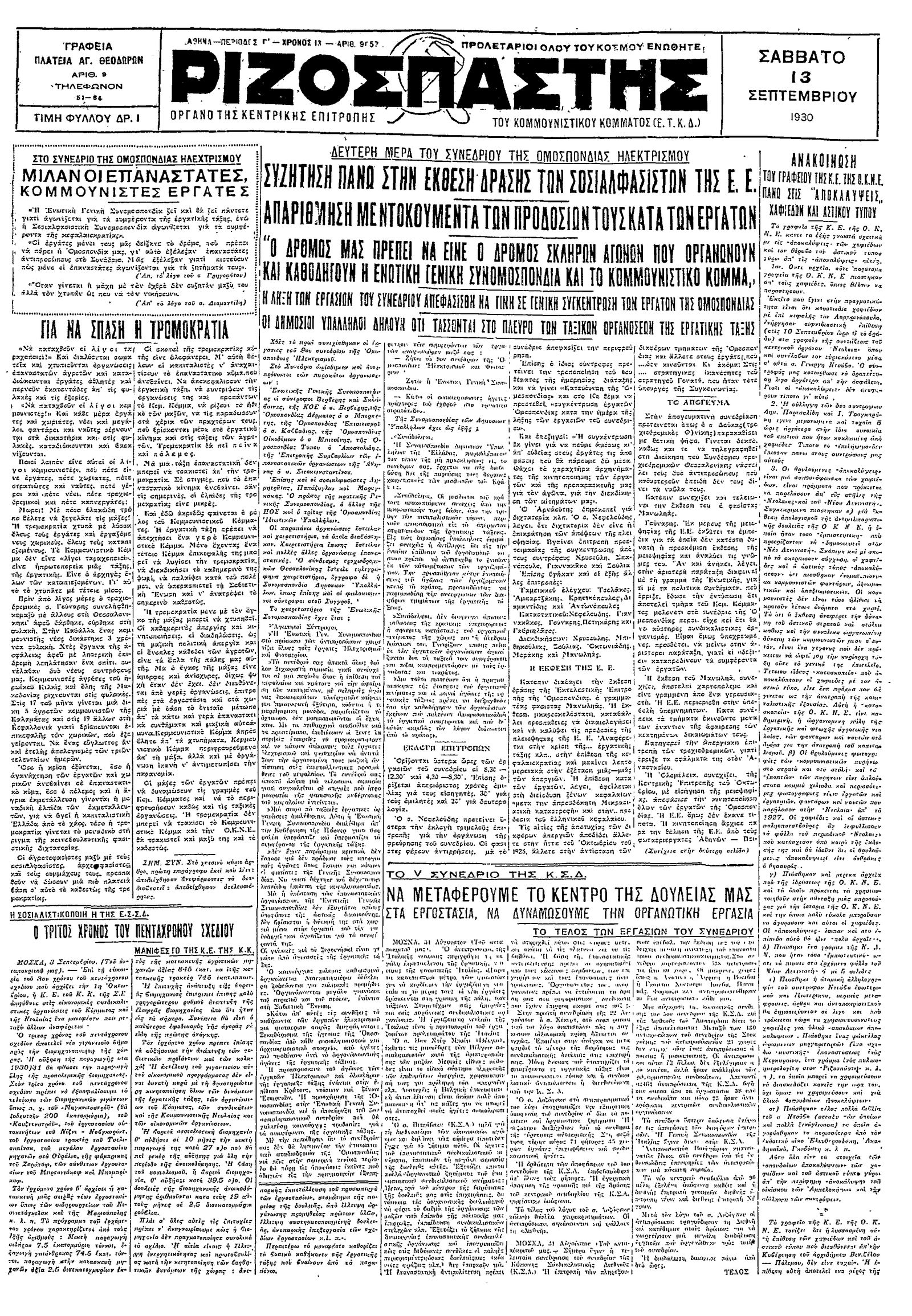 Ριζοσπάστης 13/09/1930