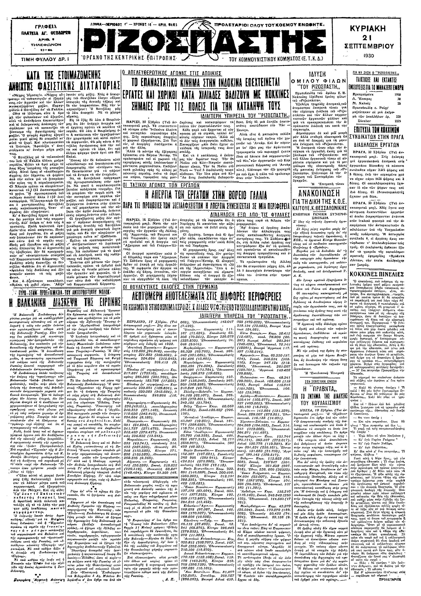 Ριζοσπάστης 21/09/1930