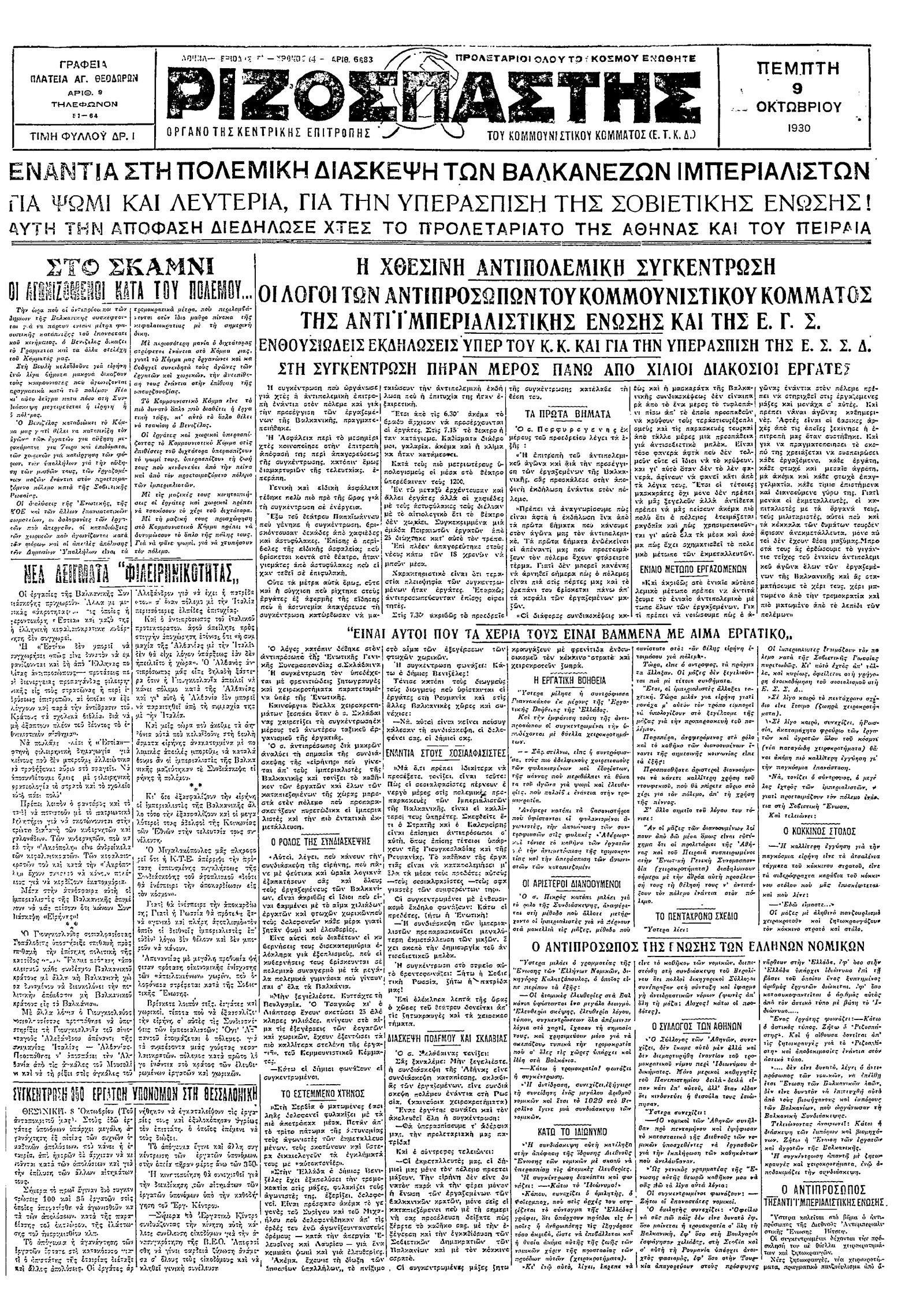 Ριζοσπάστης 09/10/1930