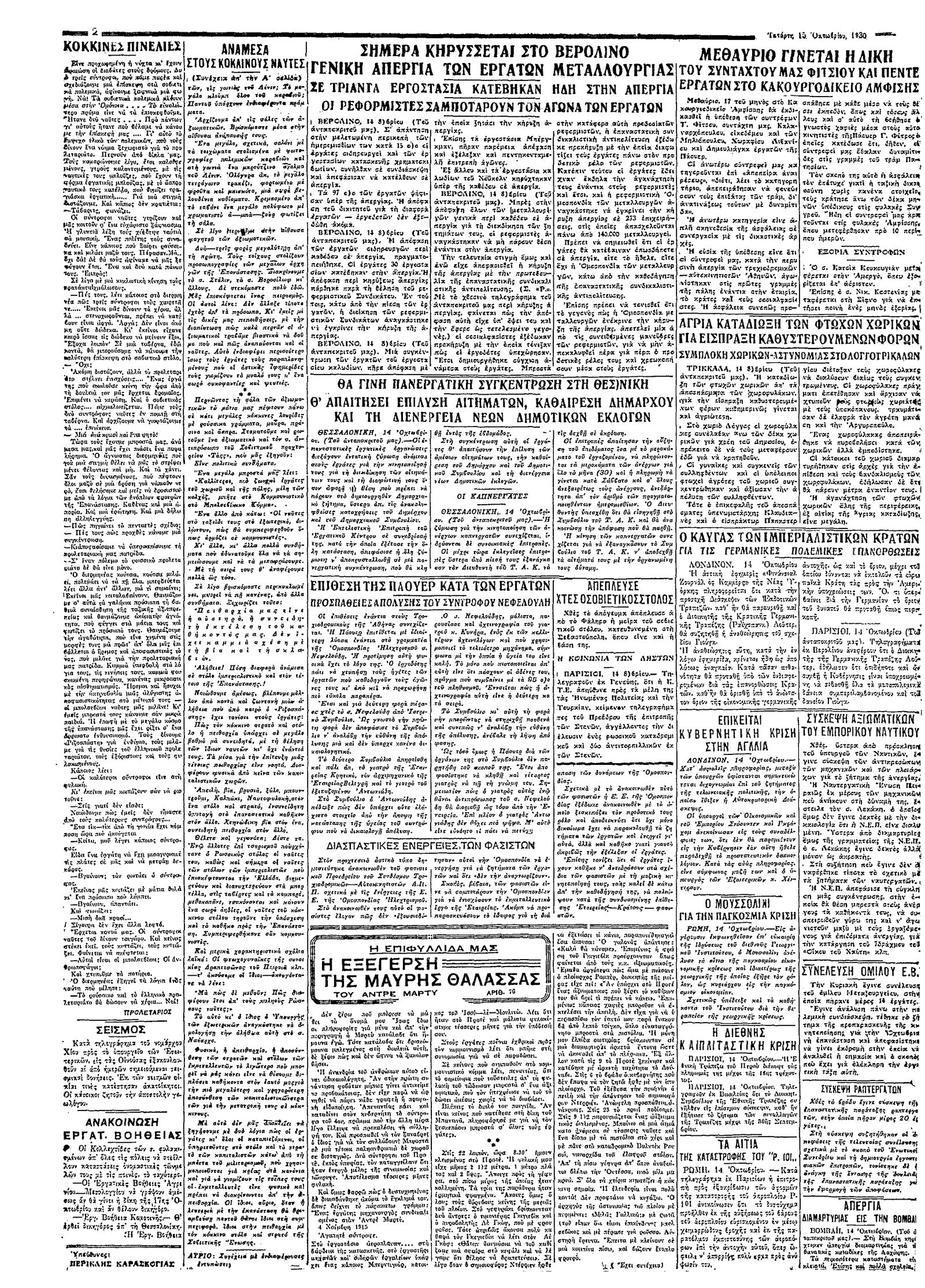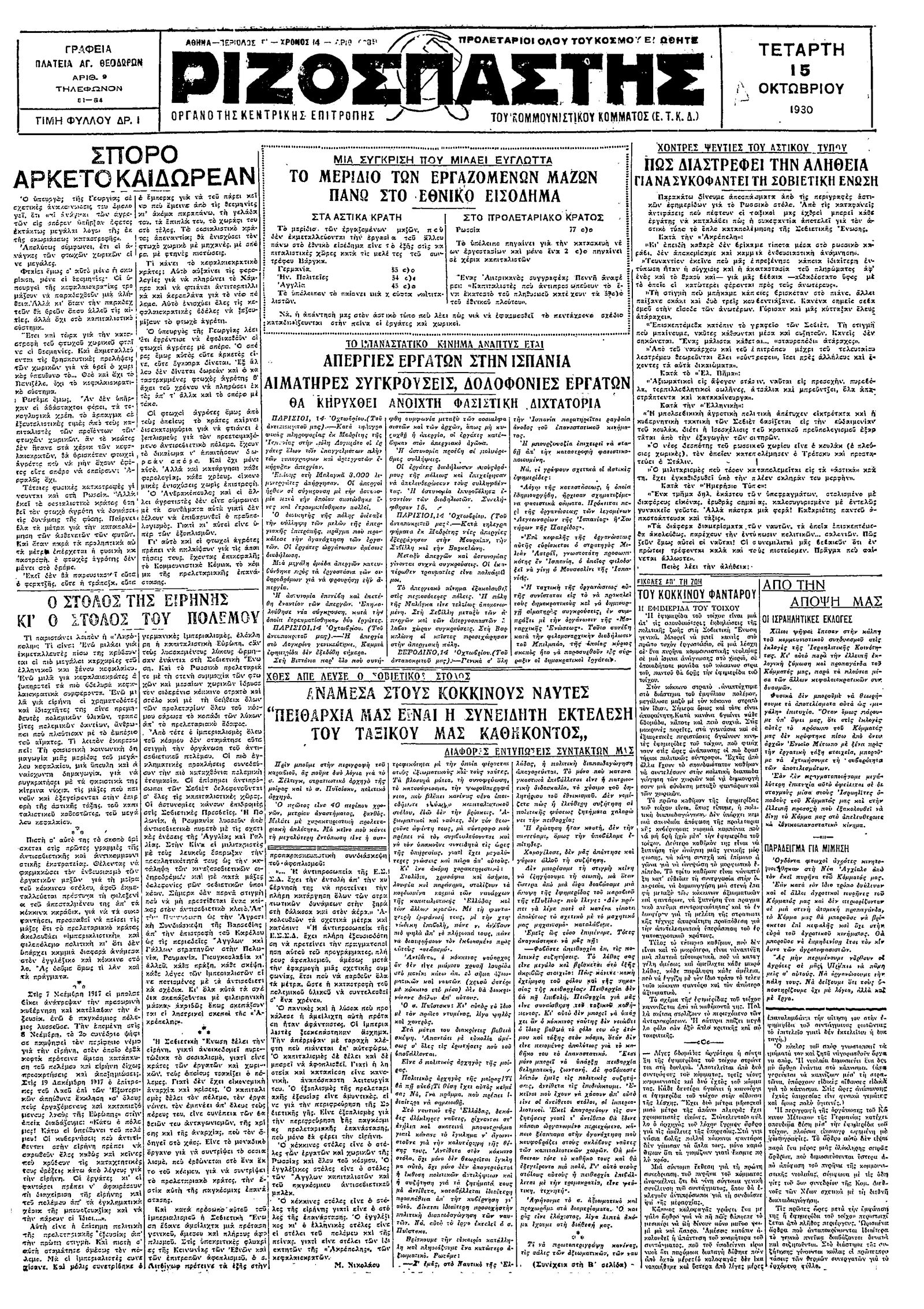 Ριζοσπάστης 15/10/1930