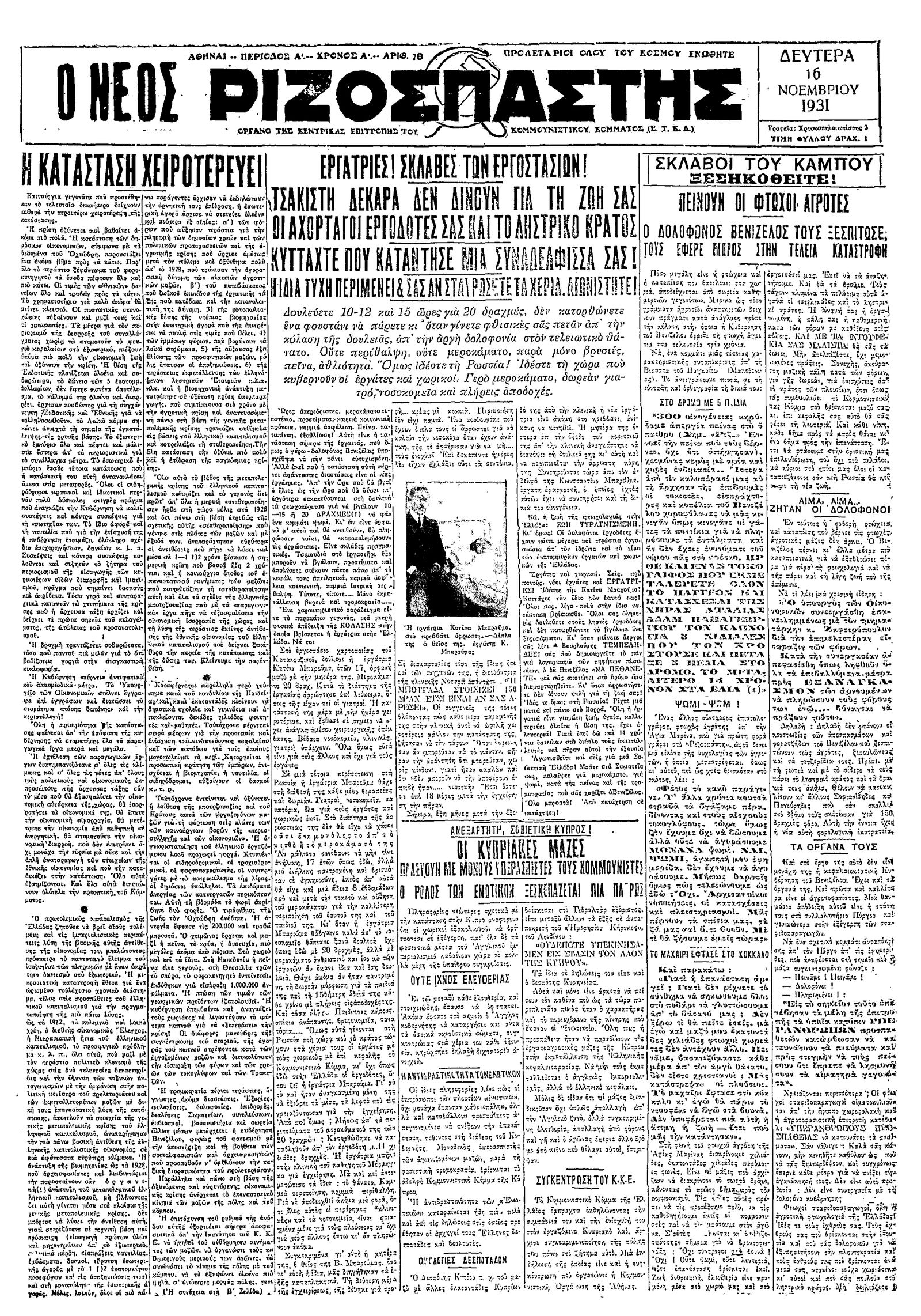 Ριζοσπάστης 16/11/1931