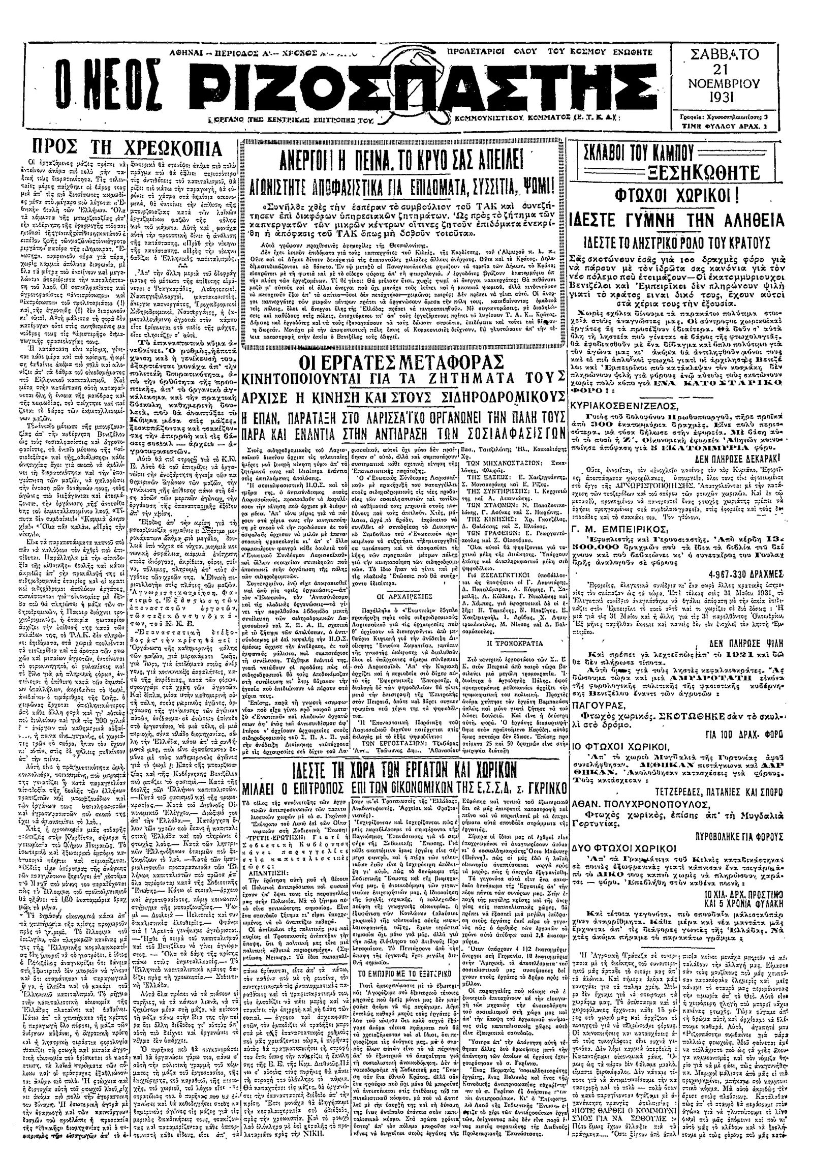 Ριζοσπάστης 21/11/1931