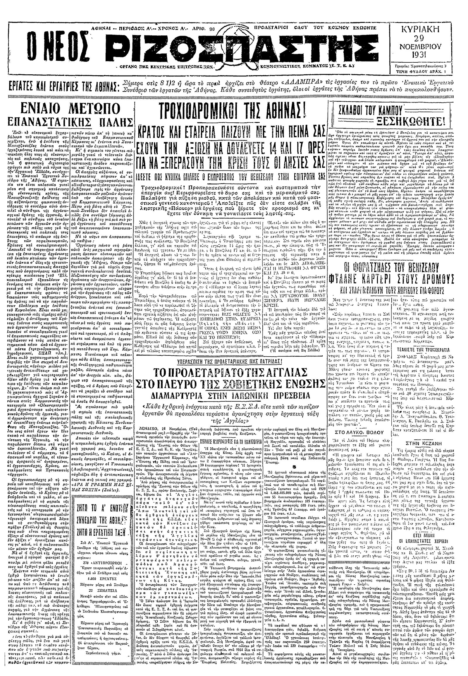 Ριζοσπάστης 29/11/1931