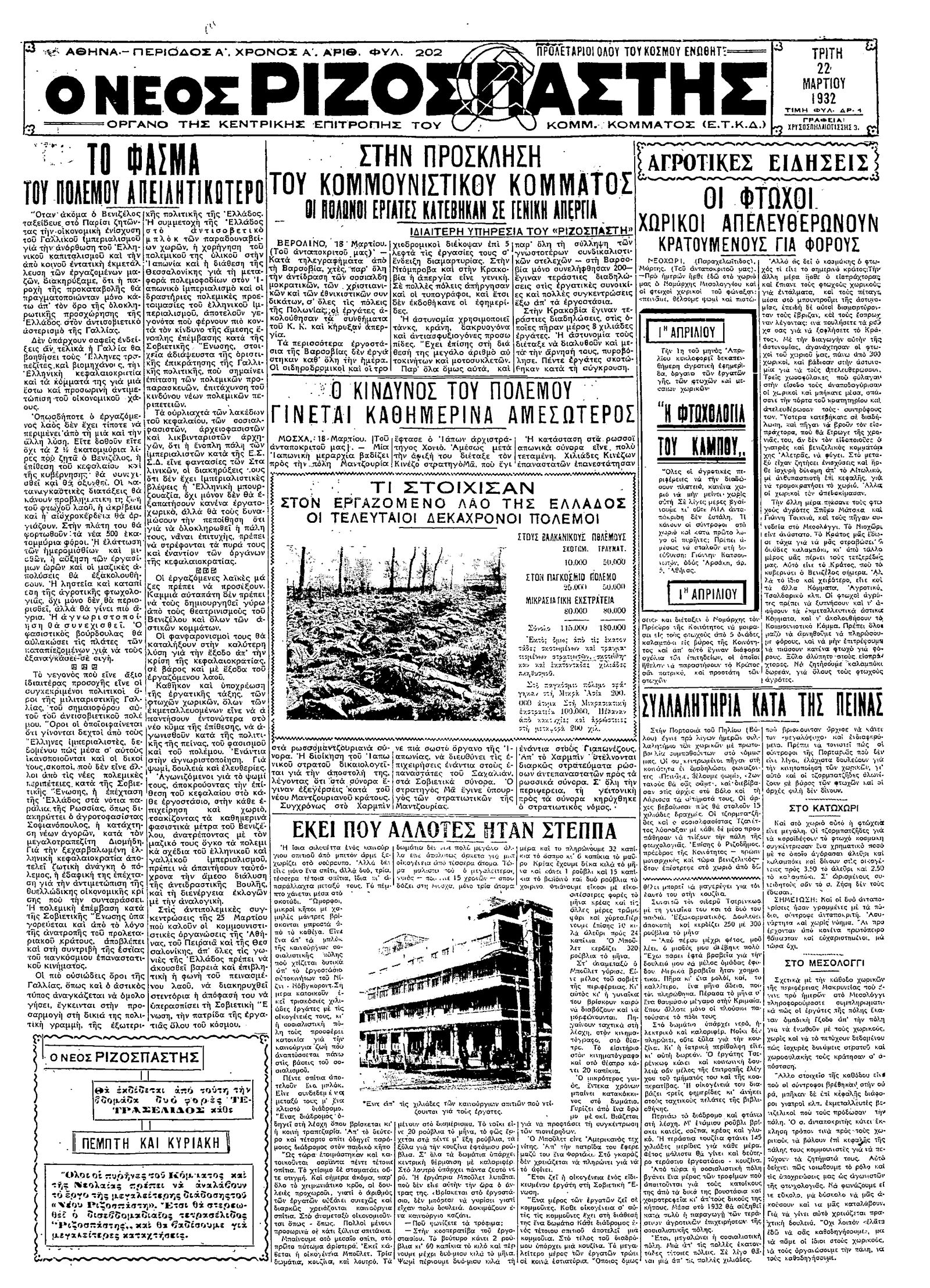 Ριζοσπάστης 22/03/1932