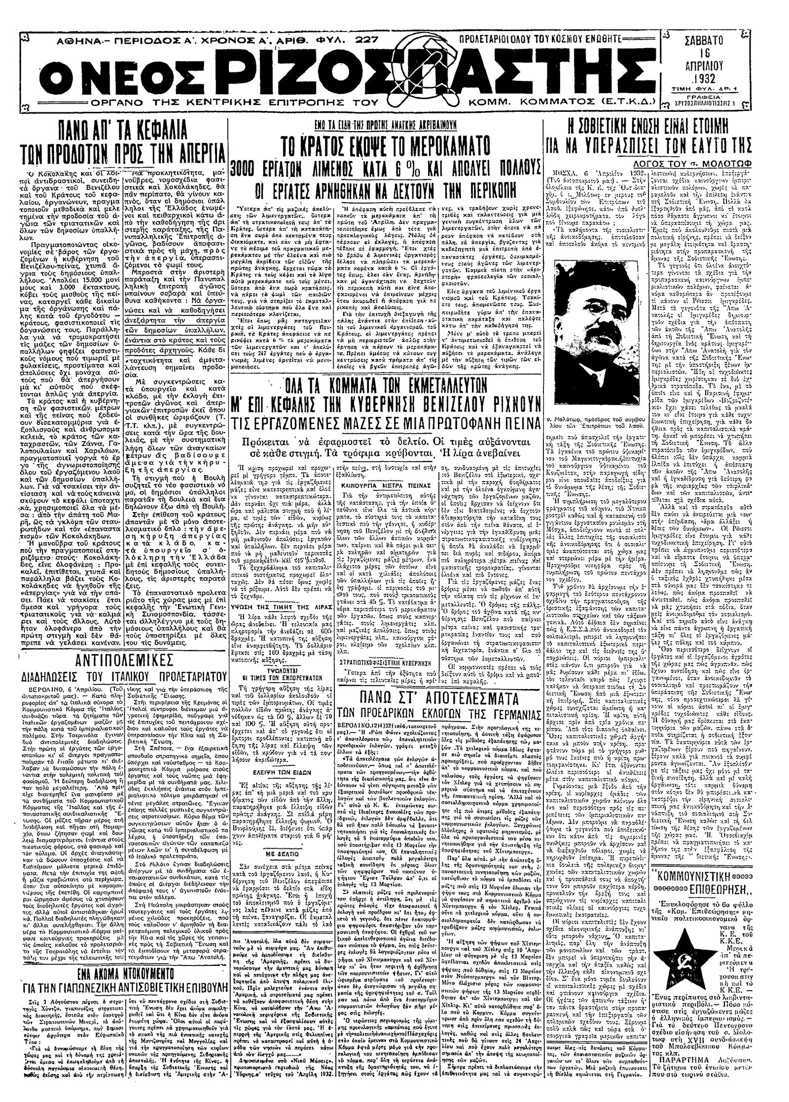 Ριζοσπάστης 16/04/1932
