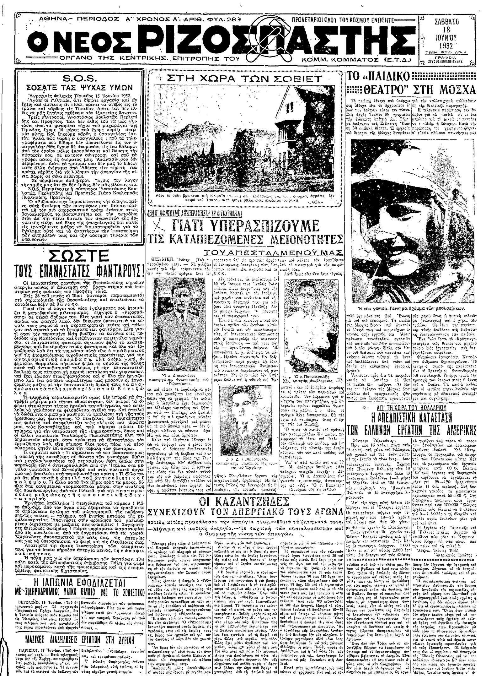 Ριζοσπάστης 18/06/1932