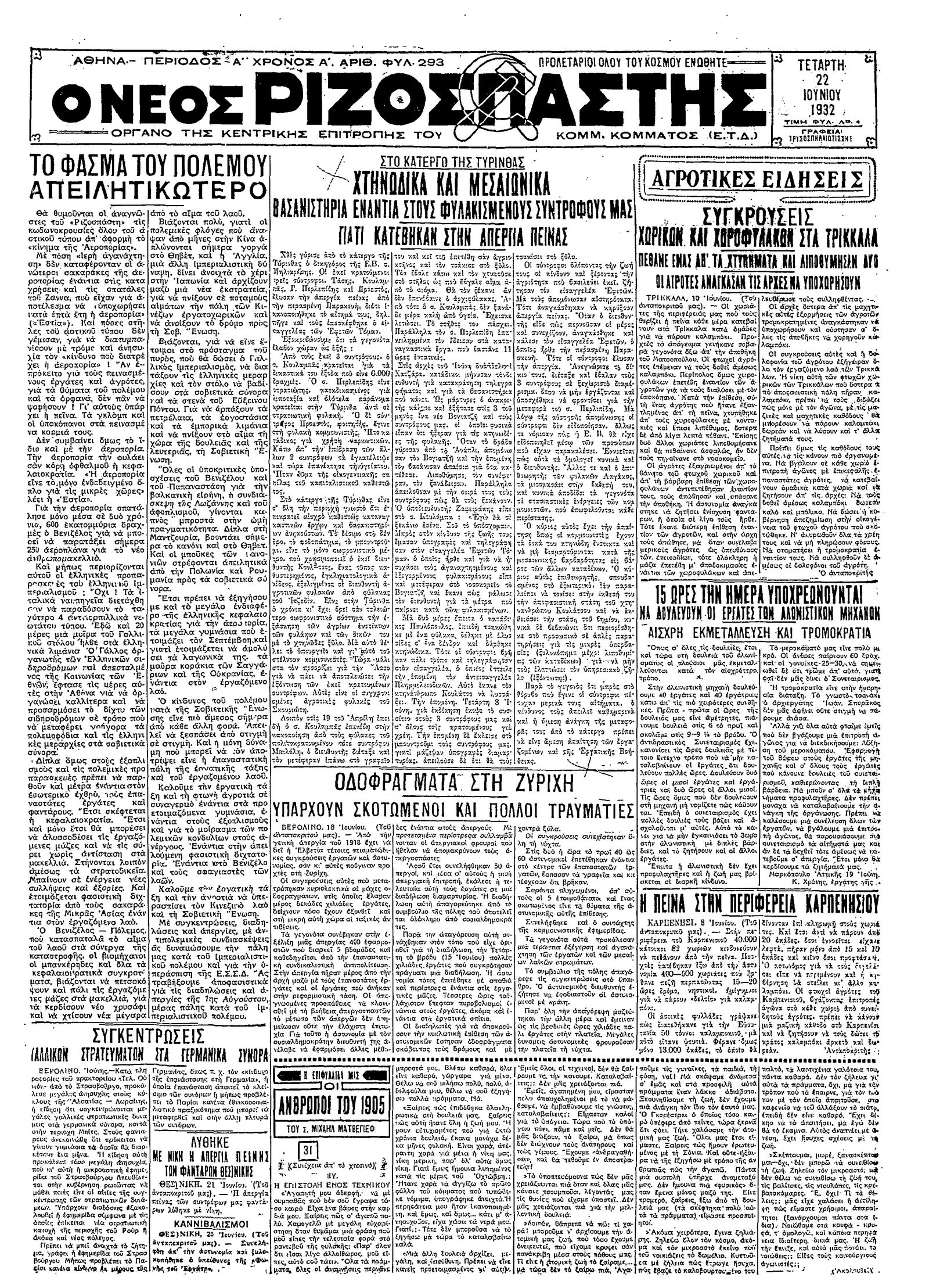 Ριζοσπάστης 22/06/1932