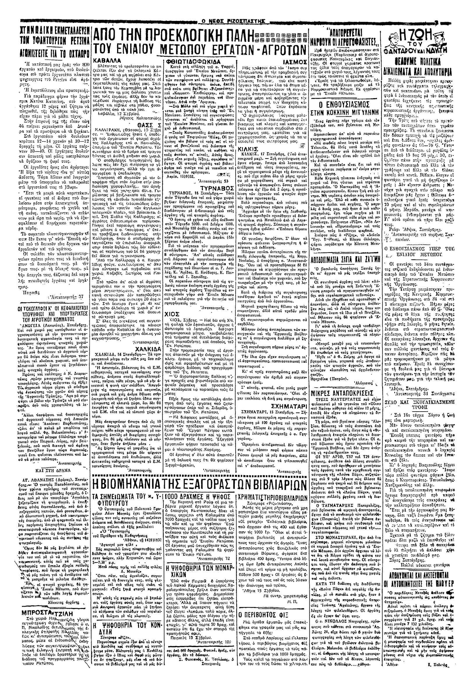 Ριζοσπάστης 20/09/1932
