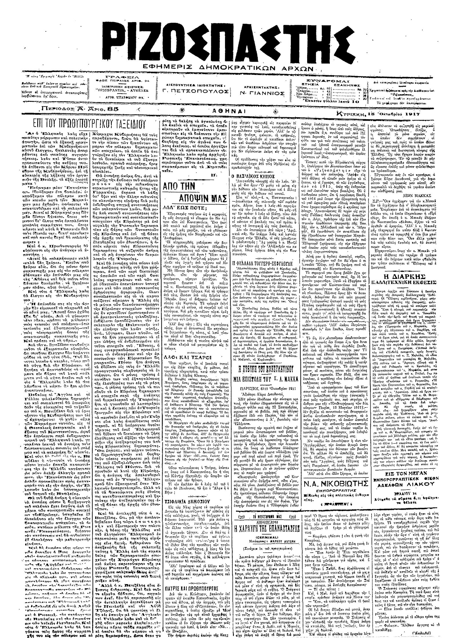 Ριζοσπάστης 15/10/1917