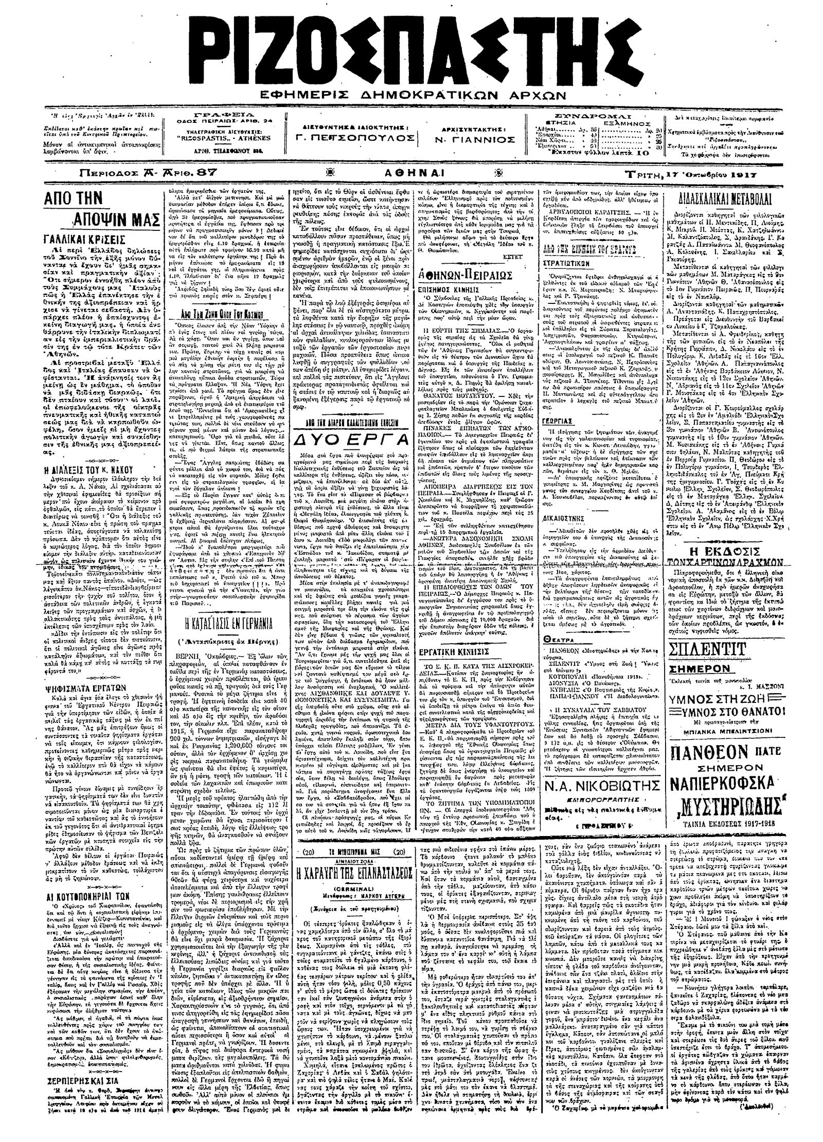 Ριζοσπάστης 17/10/1917