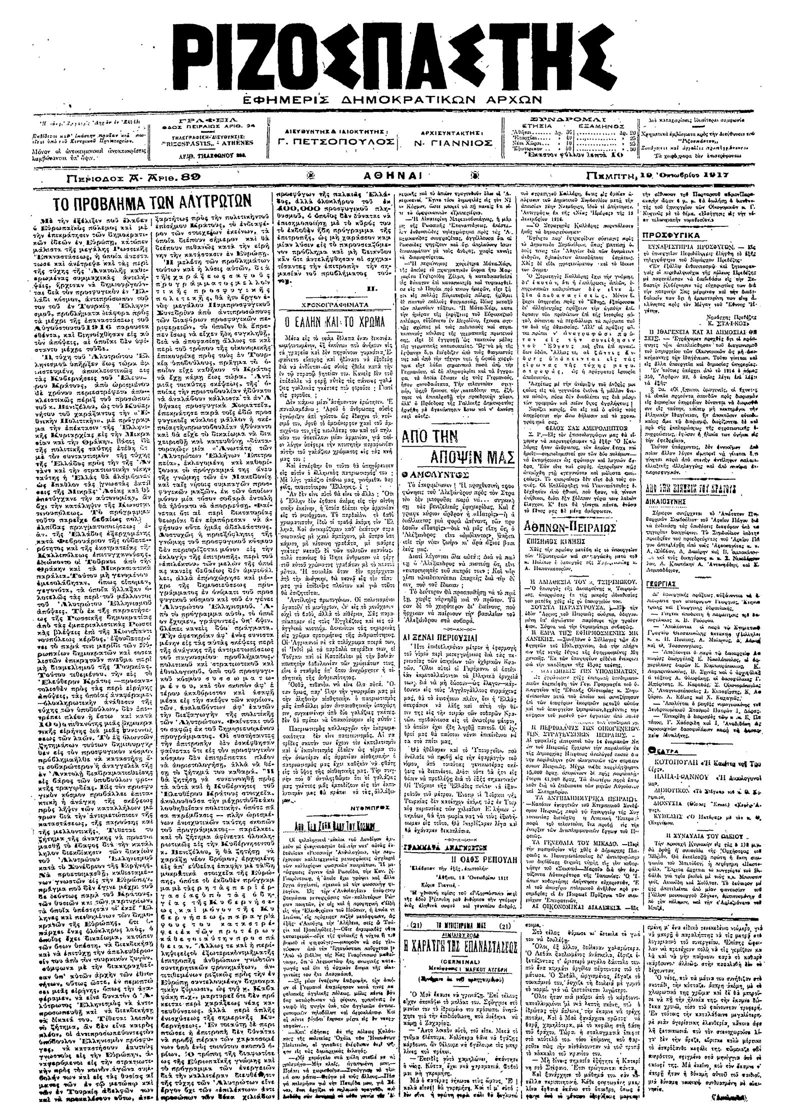 Ριζοσπάστης 19/10/1917